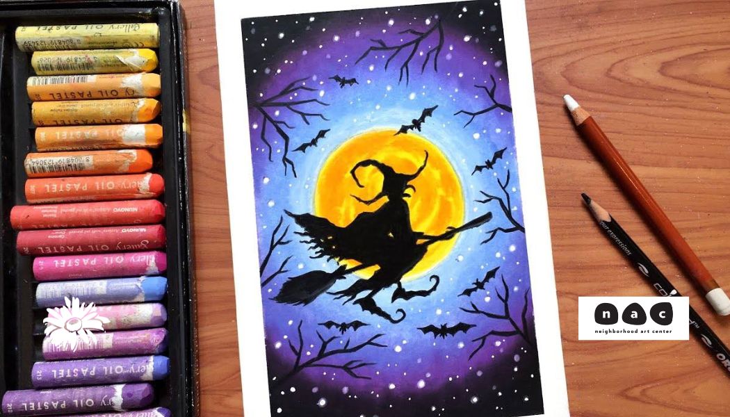 Our featured project is a Halloween botanical oil pastel relief drawing. Arrange natural materials under paper, then use oil pastels to reveal hidden shapes and textures to incorporate into your art! Taught by Jean Richardson of Neighborhood Art Center.