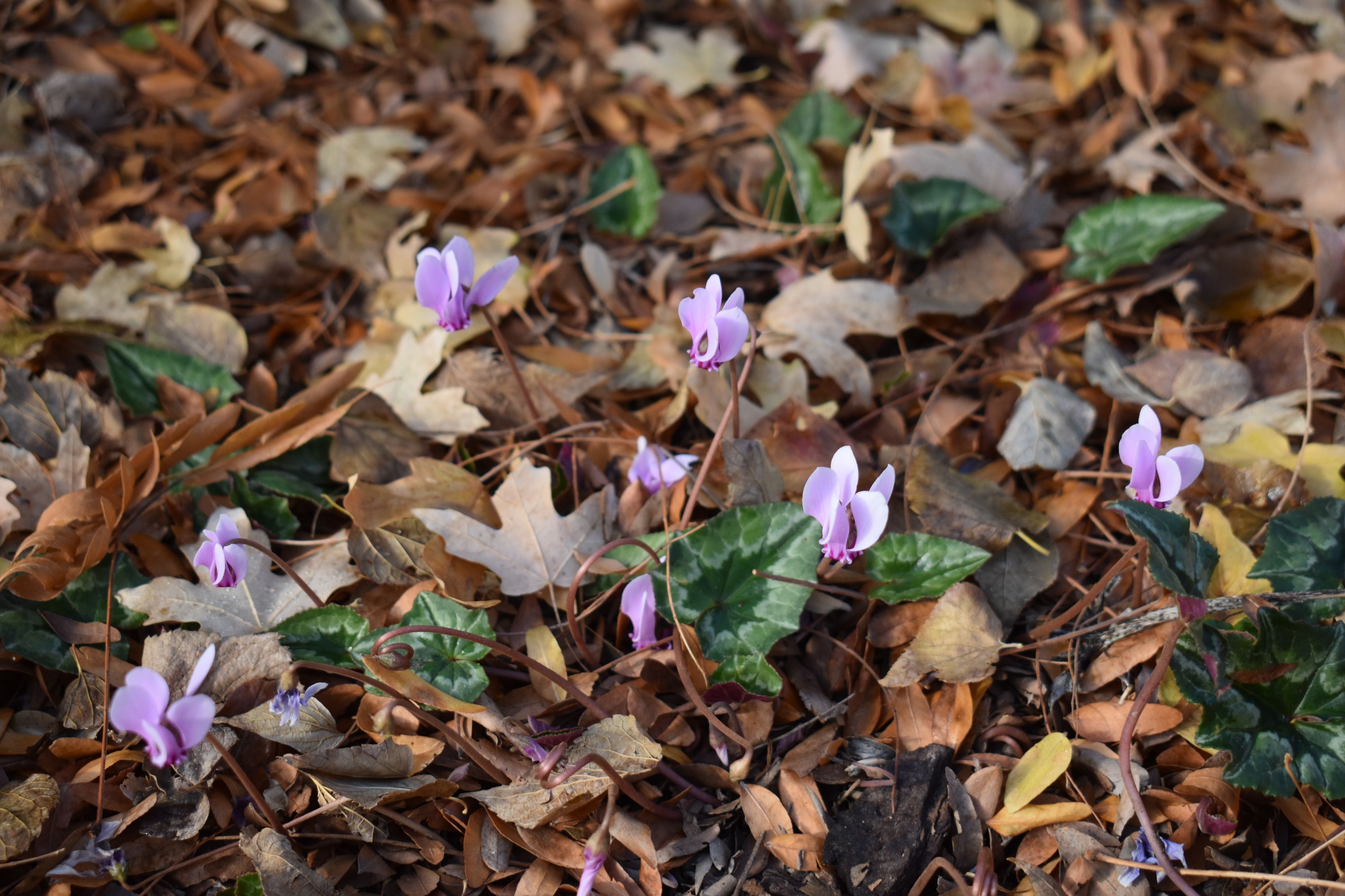 Plant Description: Fall-blooming perennial with large, mottled, ivy-like leaves that emerge after the flowers bloom and last throughout the winter. Pink flowers with red eyes and reflexed petals are borne one per stalk and bloom in late-summer to fall. Does not require a lot of water to thrive. Prefers partial shade.
