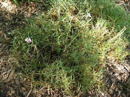 Plant Description: Broad, mat-forming perennial with bright rose-red flowers that bloom in late-spring. Grayish green leaves are very narrow. Prefers to grow in part shade.