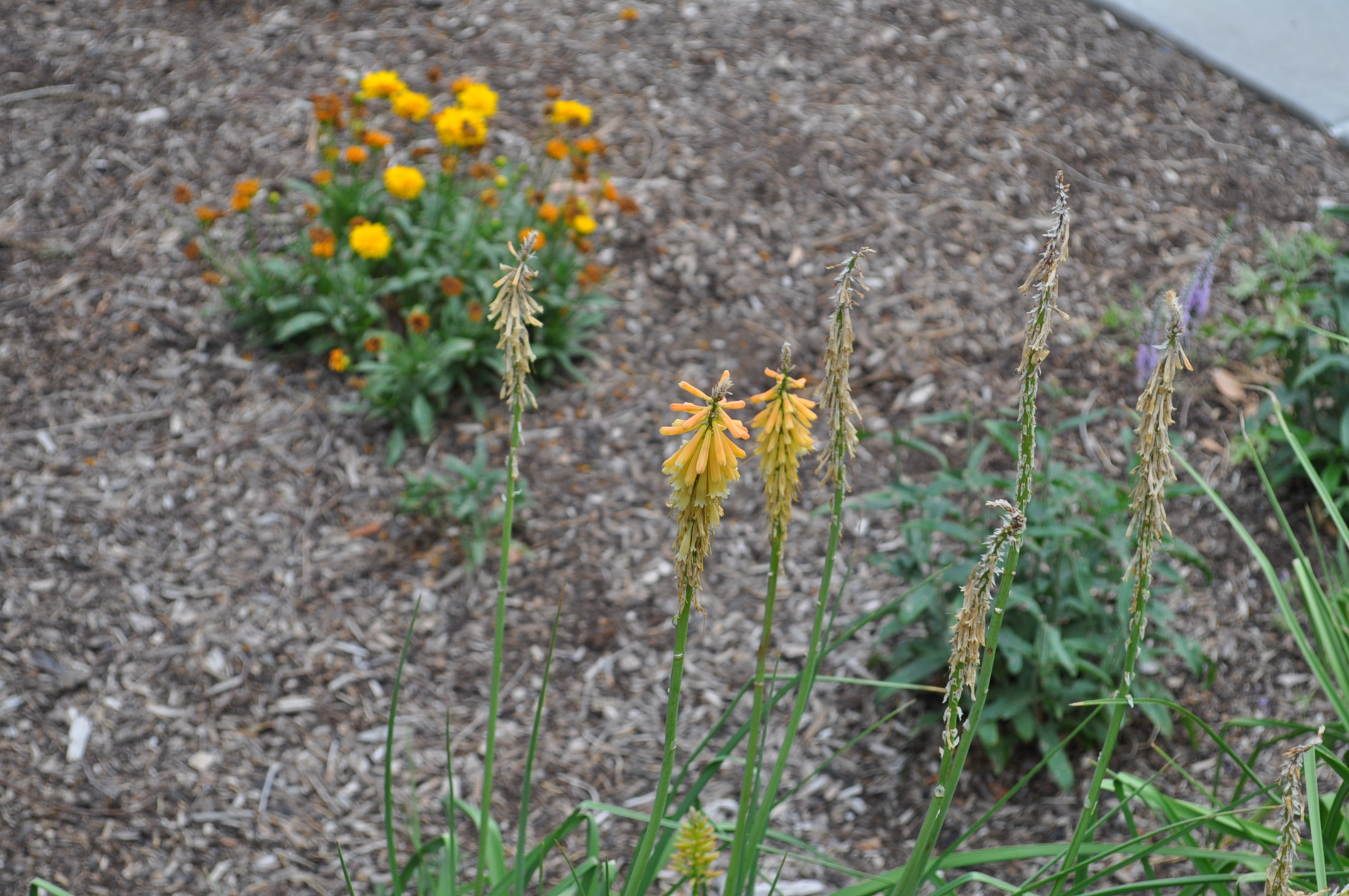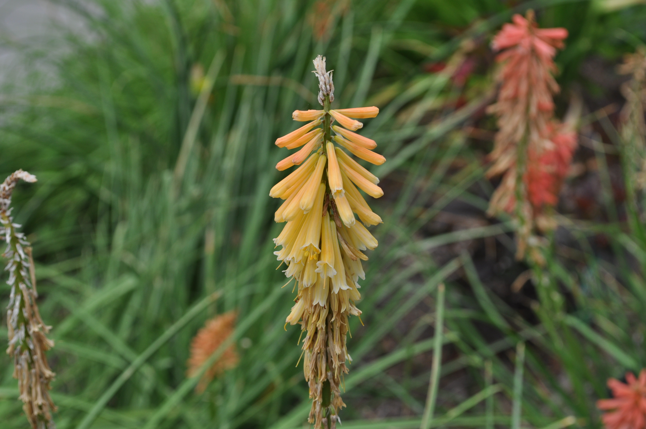 Plant Description: This perennial has fleshy grass-like leaves that grow in a clump. Tubular, yellow to ivory flowers grow in clusters on top of long stems. The leaves are mid-green and not too showy, but are easy to maintain when not flowering. Red hot pokers are robust plants that require some water but will handle drought.