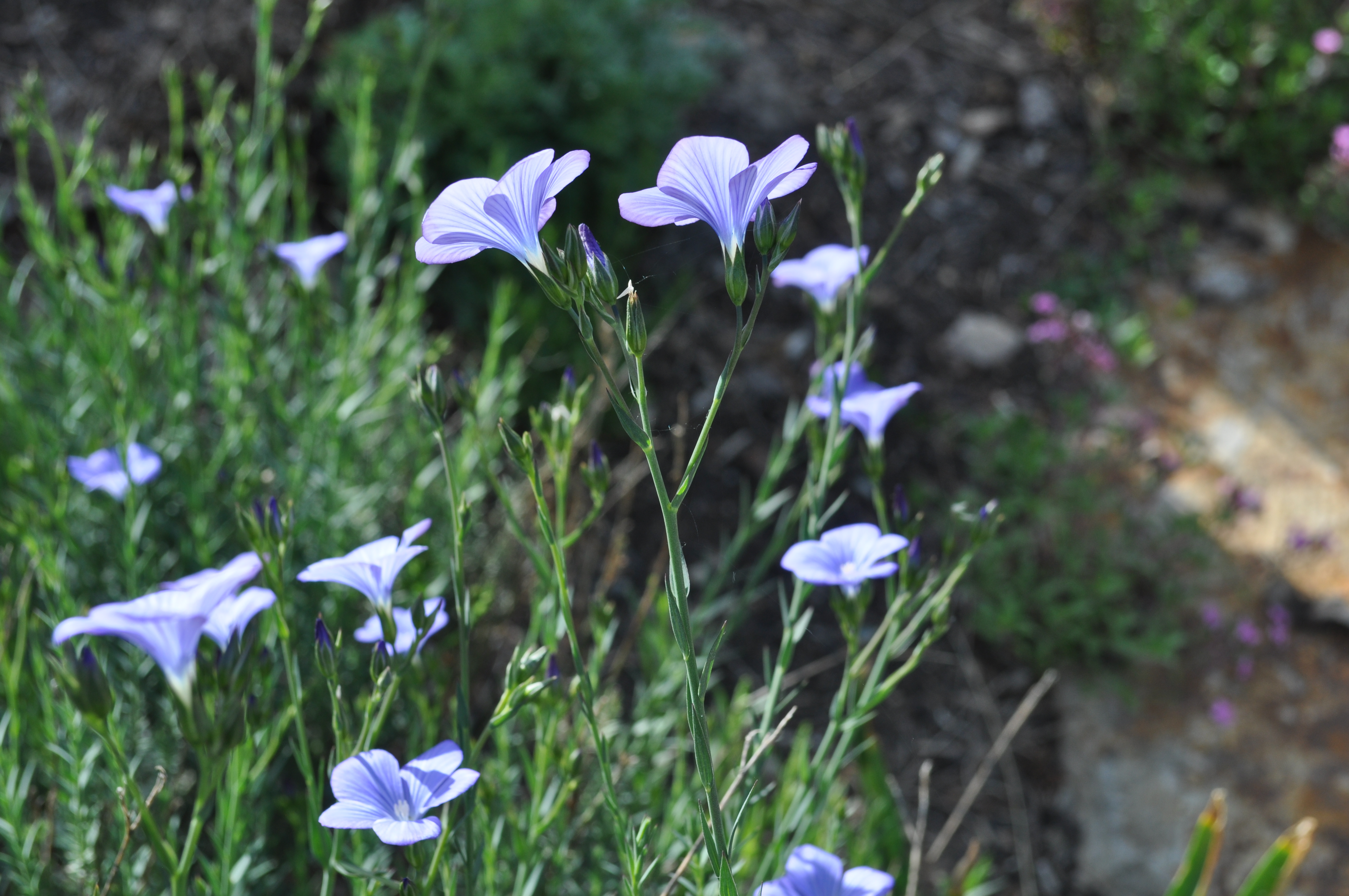 Plant Description: This flax is the Mediterranean version of the native blue flax. It blooms longer and fuller than the native with the same sky blue flowers. The leaves are fine and can be evergreen, depending on the winter.
