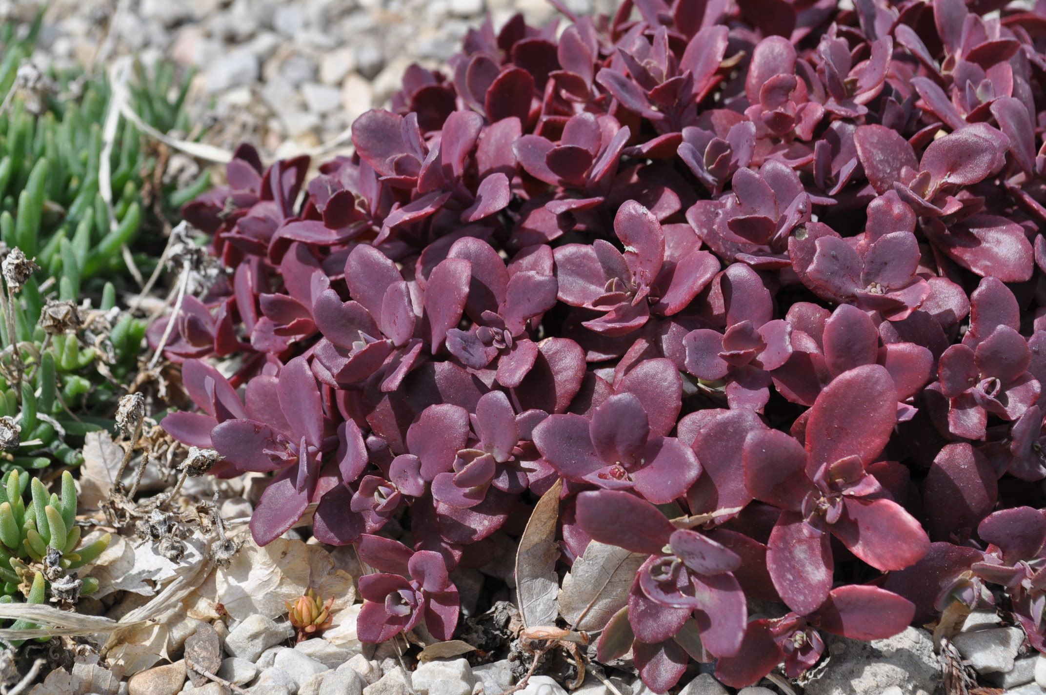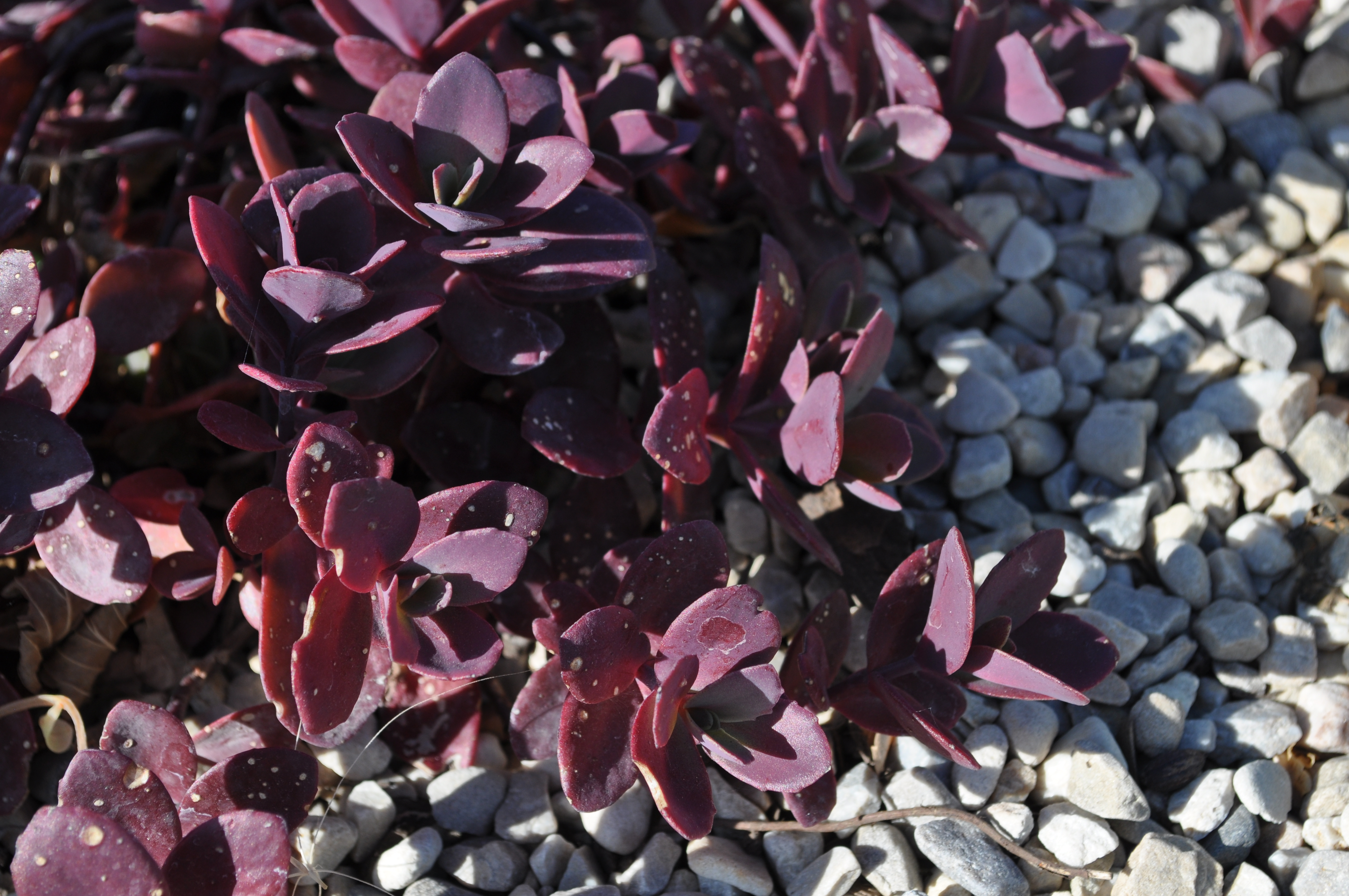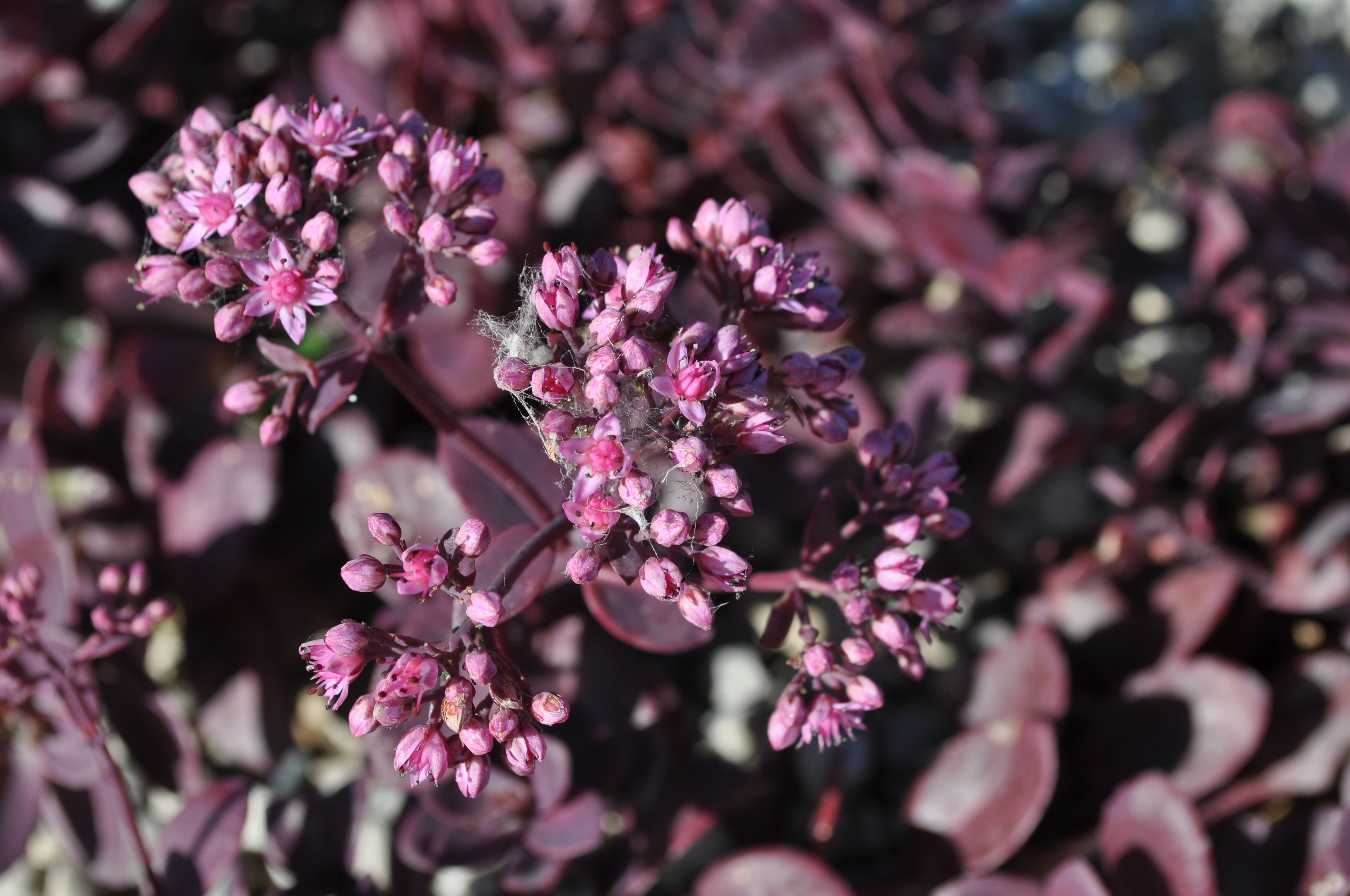 Plant Description: Mounds of plum purple foliage form this compact succulent. Soft sprays of pink flowers bloom in late summer. It works best as a ground cover and in rock gardens.