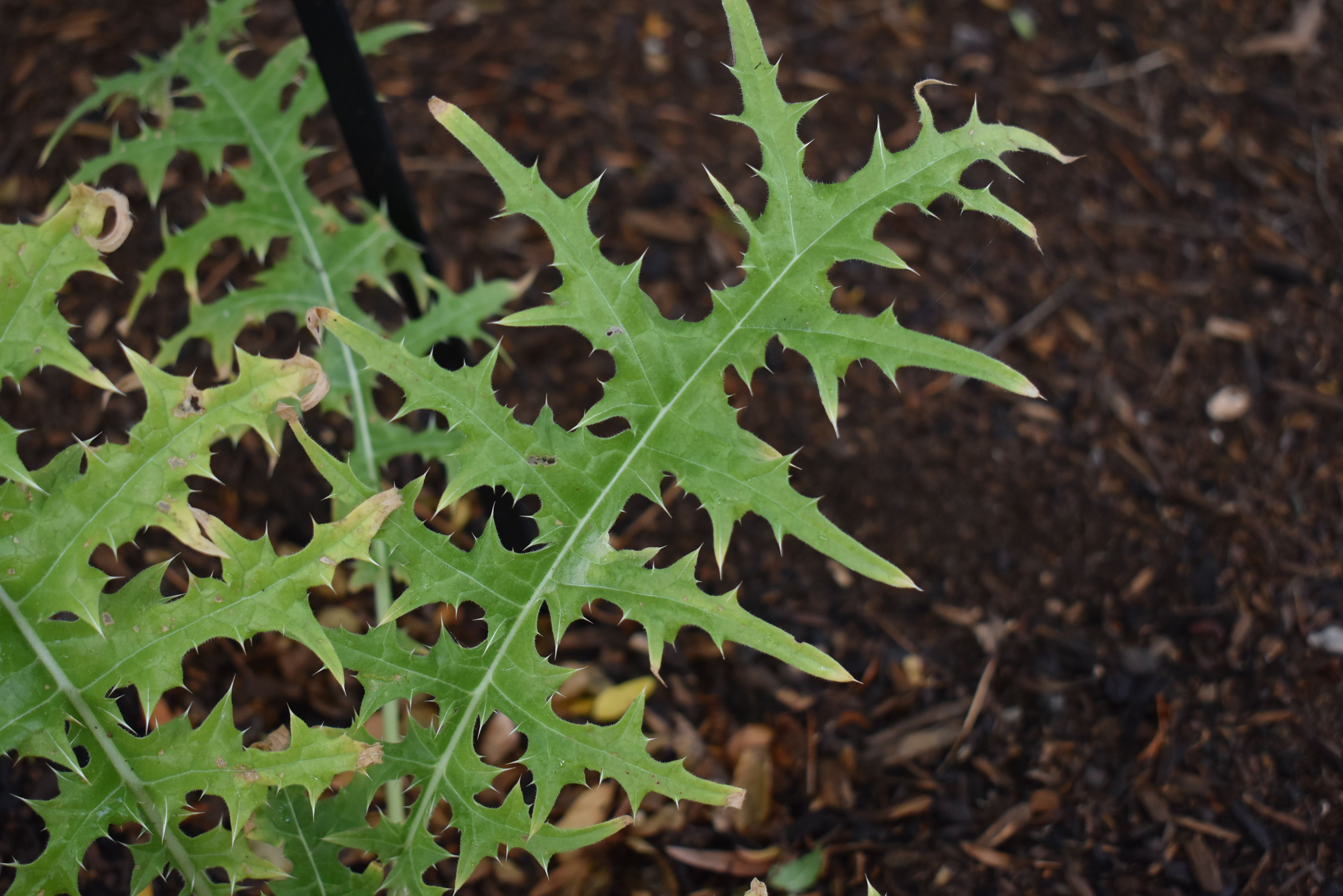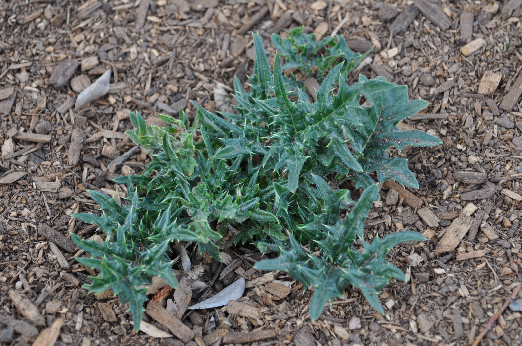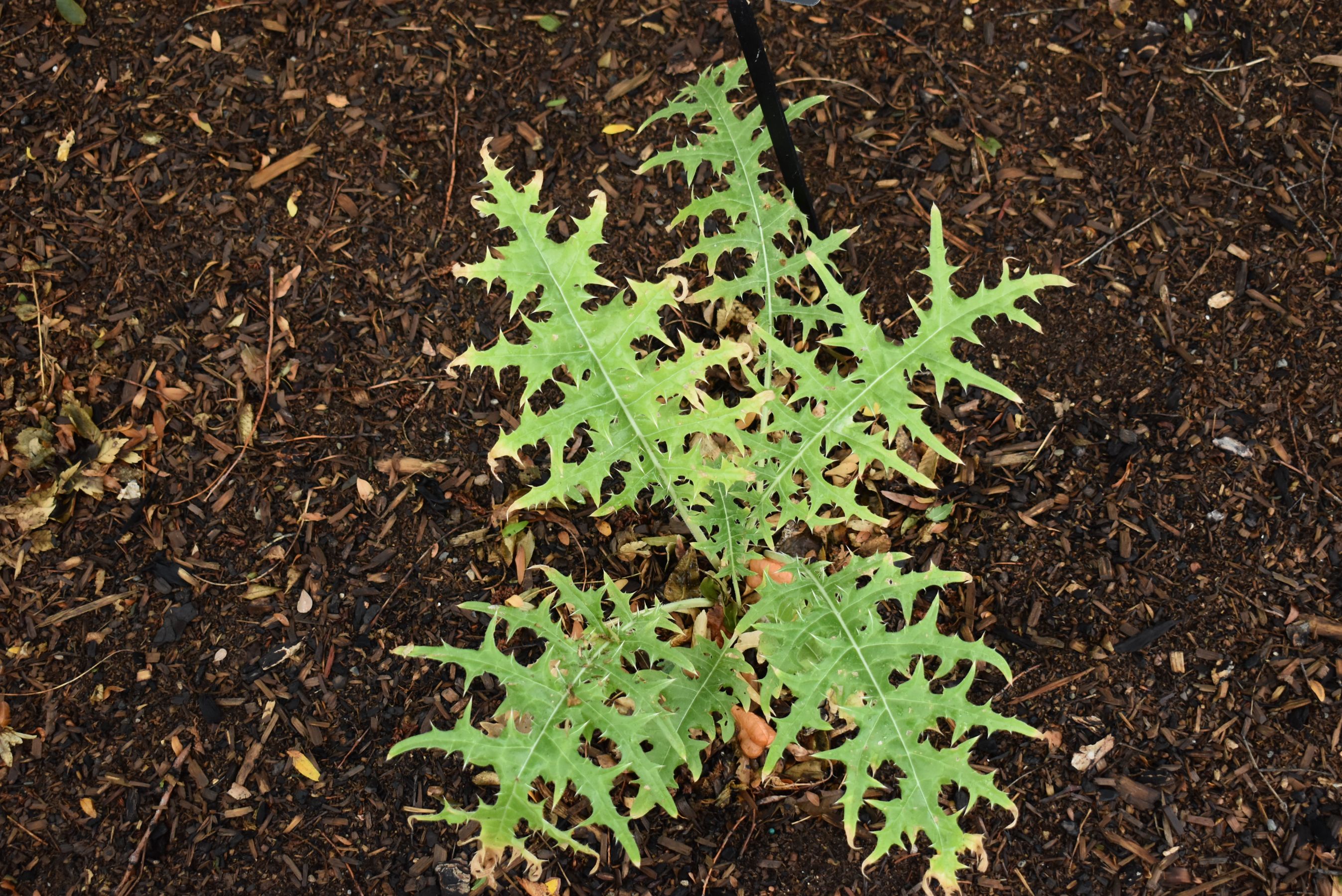 Plant Description: This plant has a clumping, upright habit but can spread aggressively by creeping rootstocks. It has glossy green leaves that arch to the ground and are spiny and thistle-like. It has hooded, pure white flowers with reddish-purple bracts. Its flower spikes can be 3-4 feet tall and resemble snapdragons.