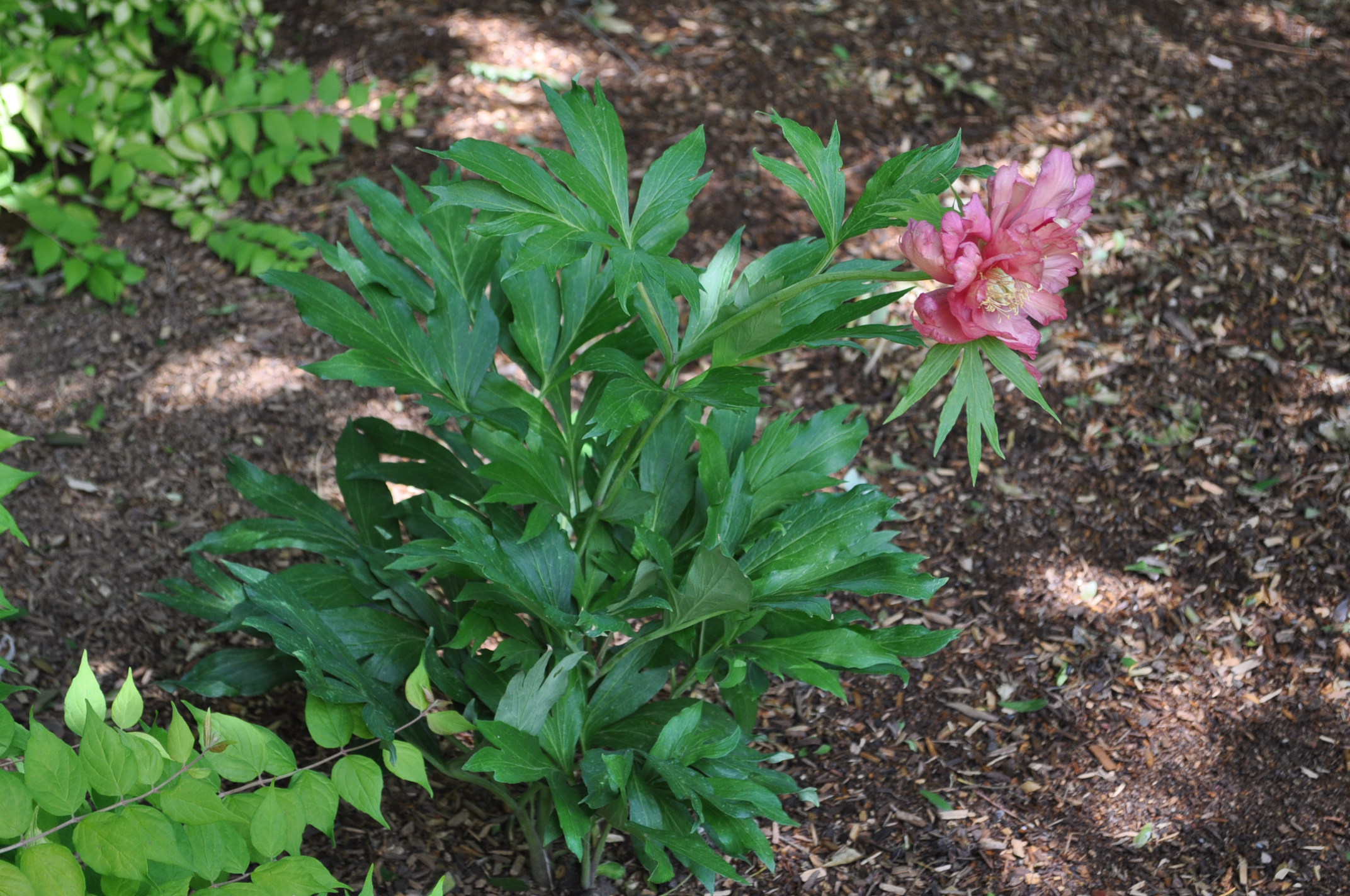Plant Description: This peony grows vigorously and the flower stocks do not need staking. The leaves are dark green and the flowers are large, double blossoms of a pink to orange color and have a pleasant scent. Bloom at the end of May into the beginning of June. Itoh peonies, or intersectional peonies, are hybrids of the tree peony (P. lemoinei) and garden peony (P. lactiflora).