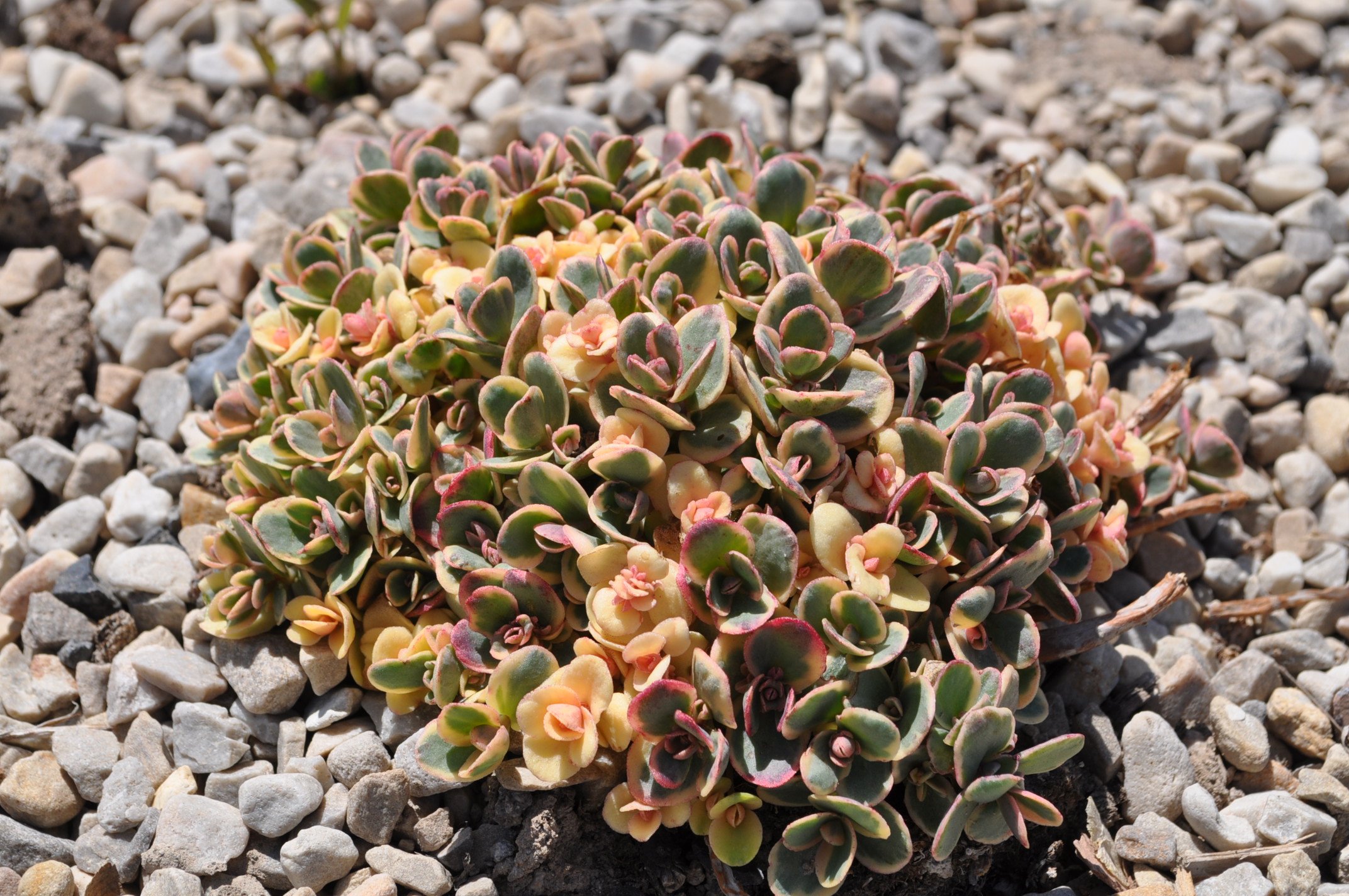 Plant Description: The Sunsparkler Lime Twister hugs the ground with two-tone lime green succulent leaves that are edged in a creamy yellow color. Light pink flower clusters top the exciting foliage in late summer. In cool spring and fall weather, the creamy edges of the leaves can turn red in color.