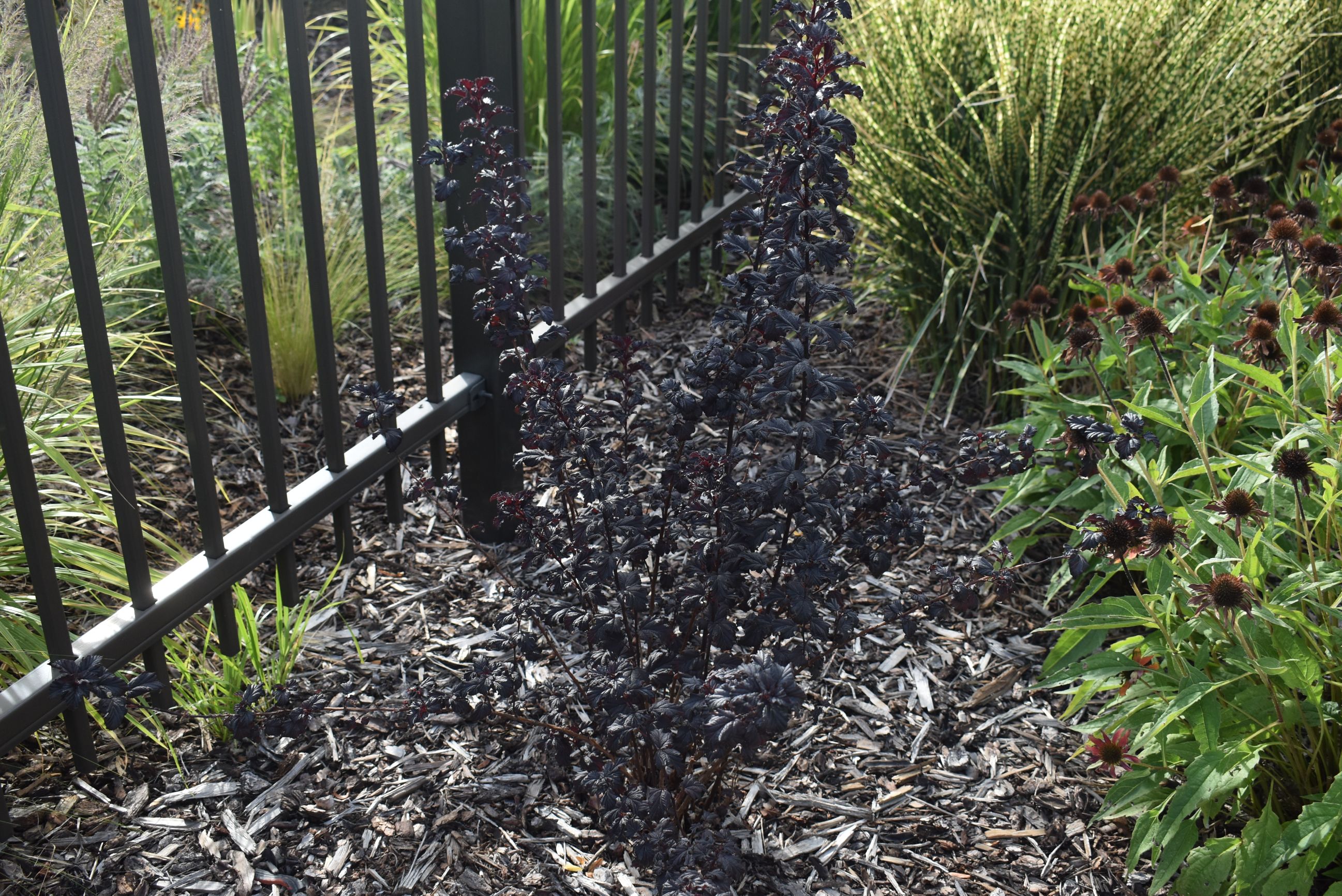 Plant Description: This deciduous shrub offers dramatic interest to any landscape. It has rich, dark purple foliage that contrasts beautifully with the clusters of white blossoms in spring. The peeling bark on the branches exposes lighter bark underneath, providing interest in the winter after the leaves fall.