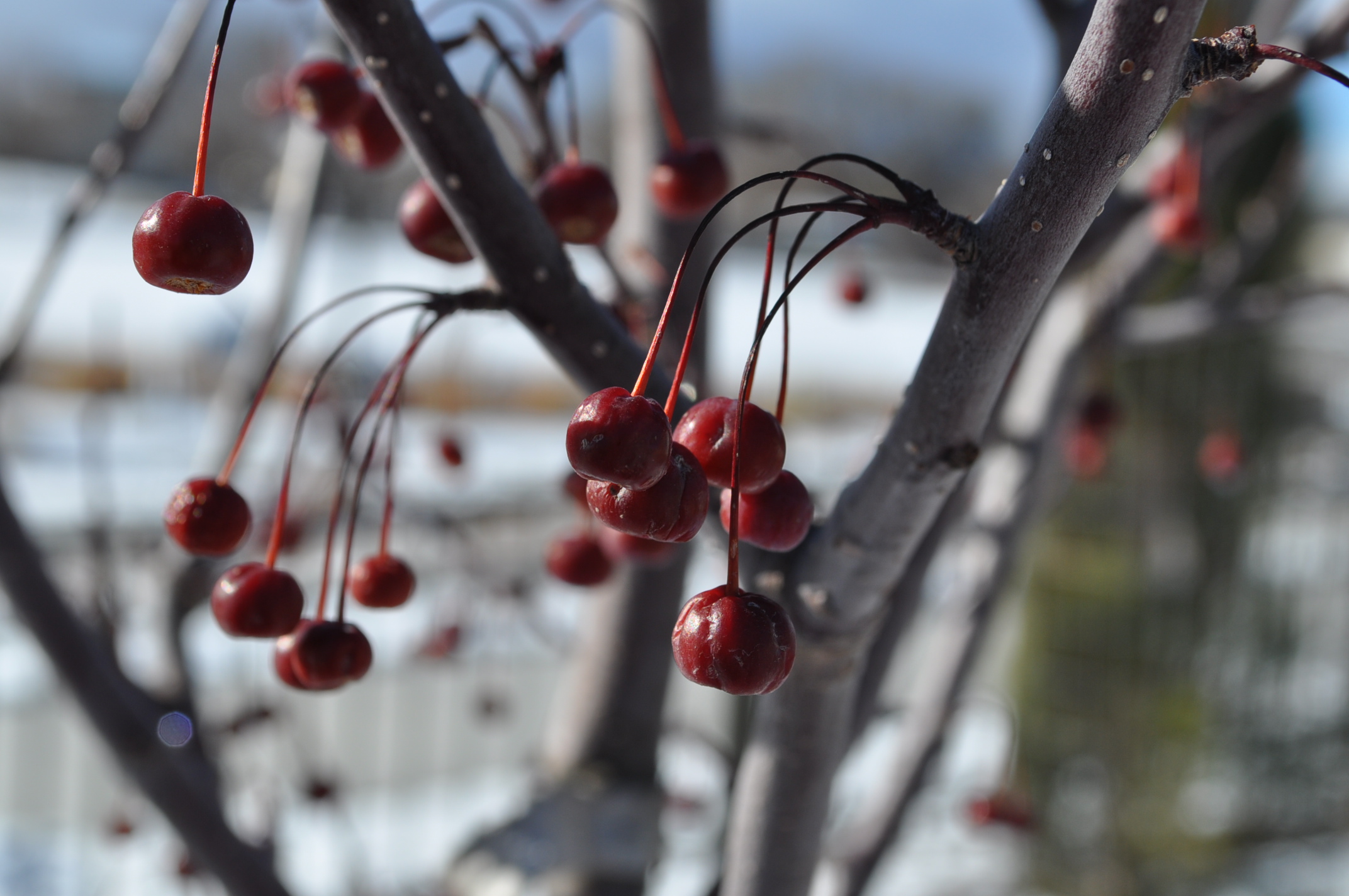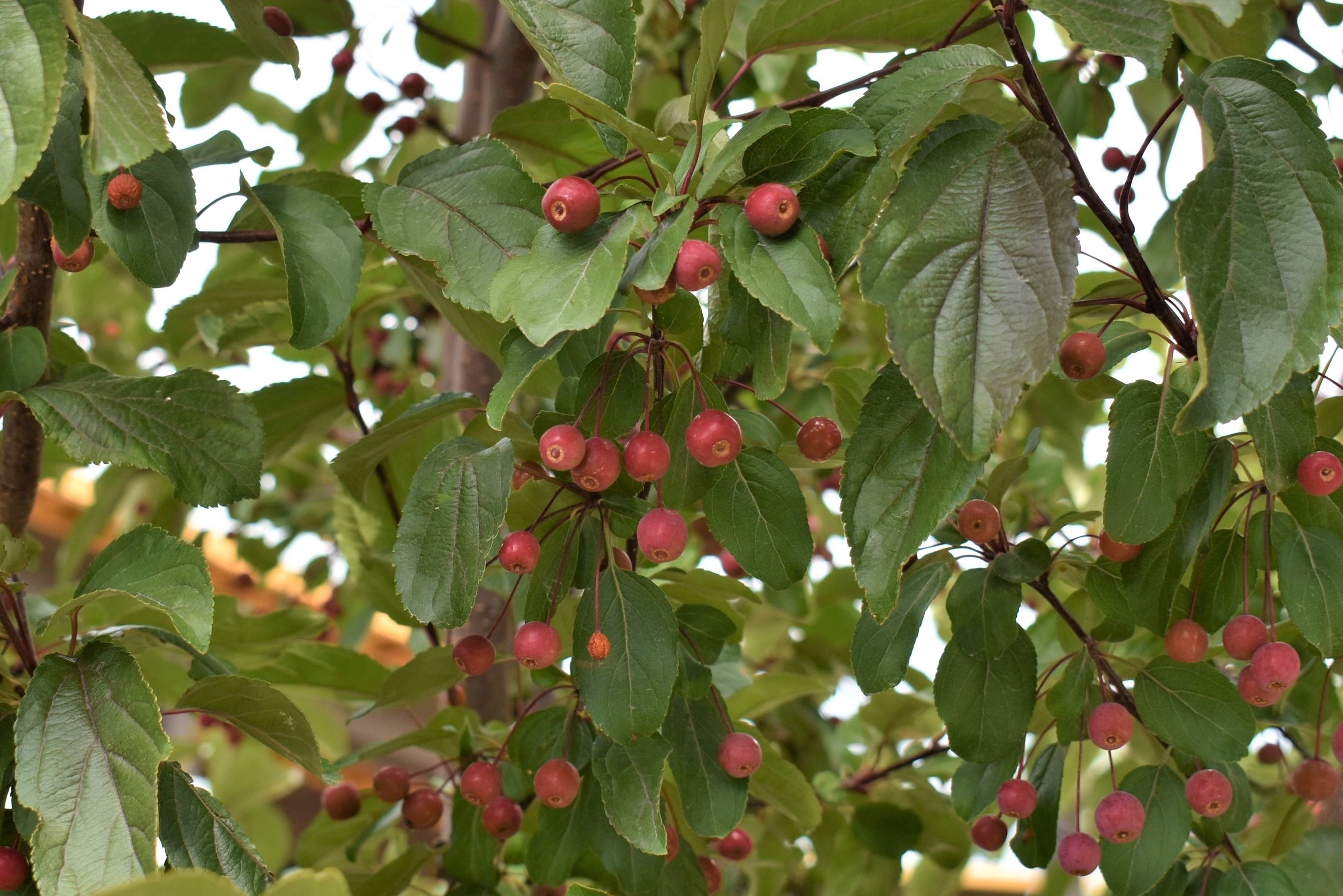 Plant Description: The Ruby Dayze Crabapple can offer nearly year-round interest. Its upright, tightly oval form brings on purple red foliage that matures to bronze-green and eventually turns an orange red in fall. Spring brings vibrant magenta pink blossoms. Deep red clusters of fruit come on in the fall and hold on into winter.