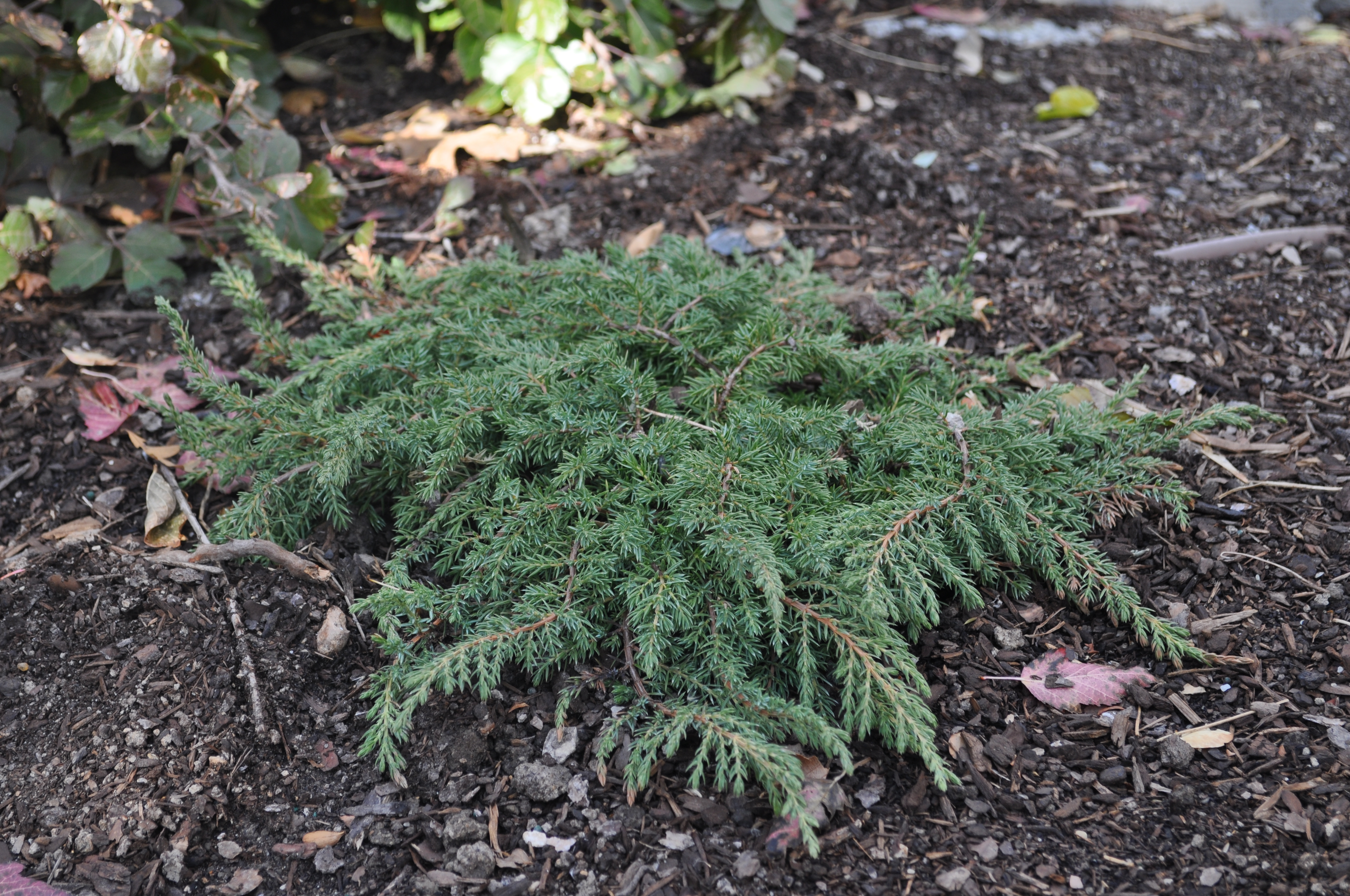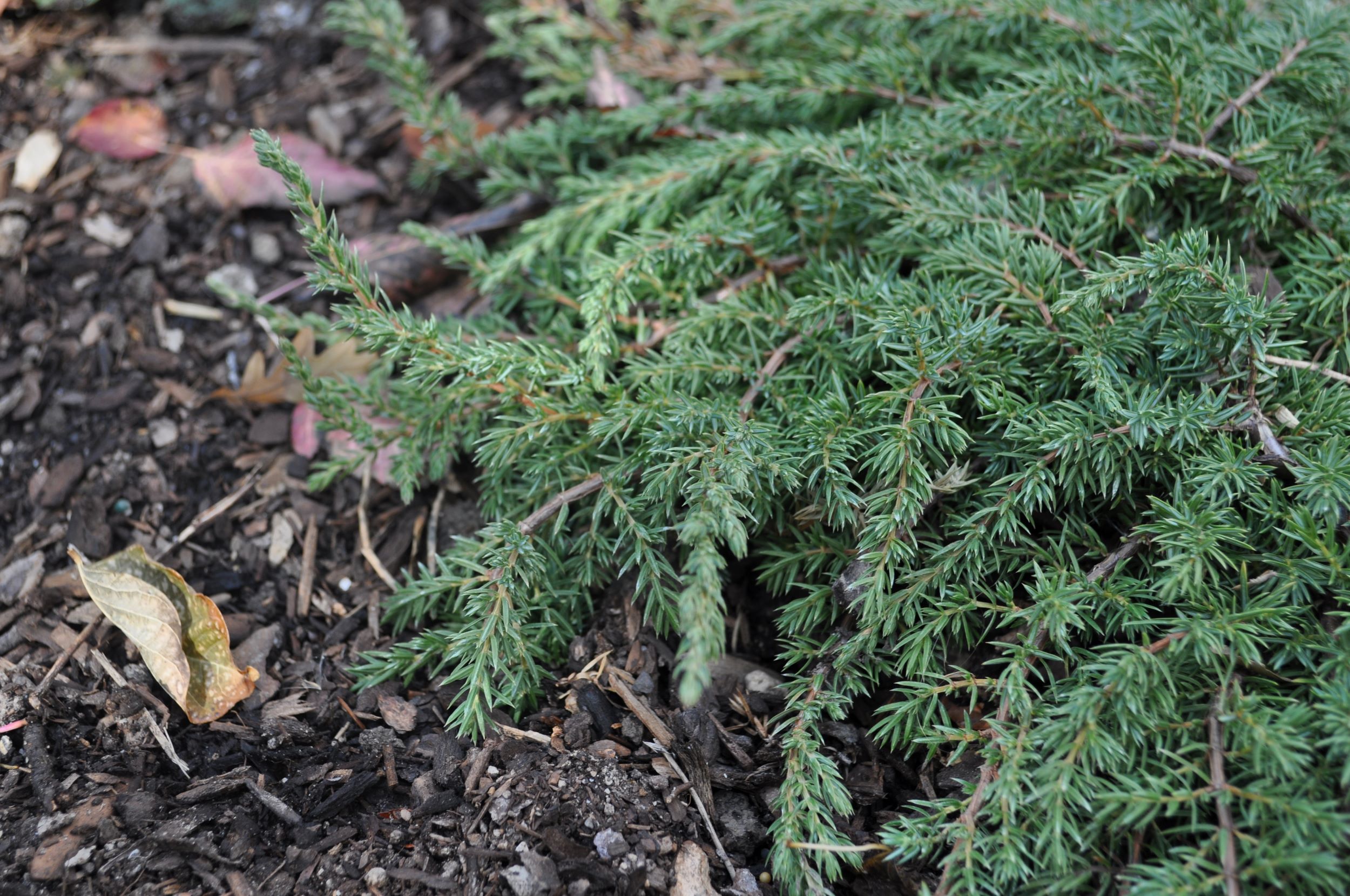 Plant Description: Green Carpet Juniper is a neat, compact cultivar of the native low-growing evergreen shrub Common Juniper. Branches covered in blue-green needles form a low, dense carpet of foliage that is easy to maintain. The new spring growth emerges bright green and darkens as it ages, turning bronze in the winter. The small green to blue-black fruit are an important source of winter food for birds. It is exceptionally drought tolerant and can even survive without irrigation once established. Tolerates poor soils and dry, exposed sites.