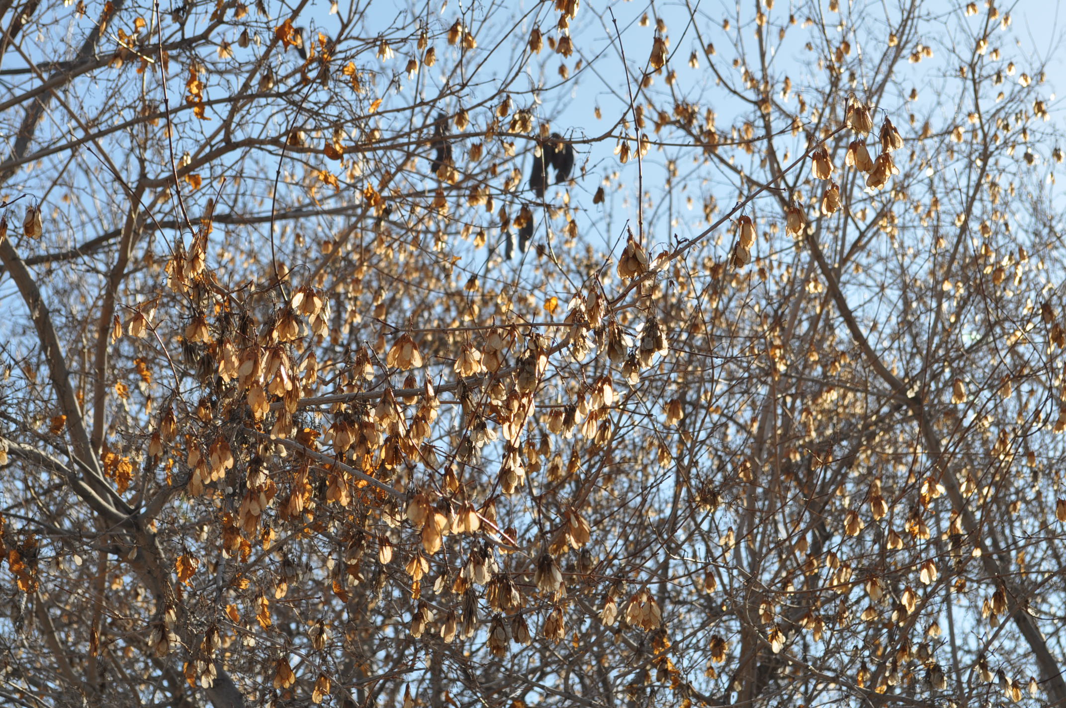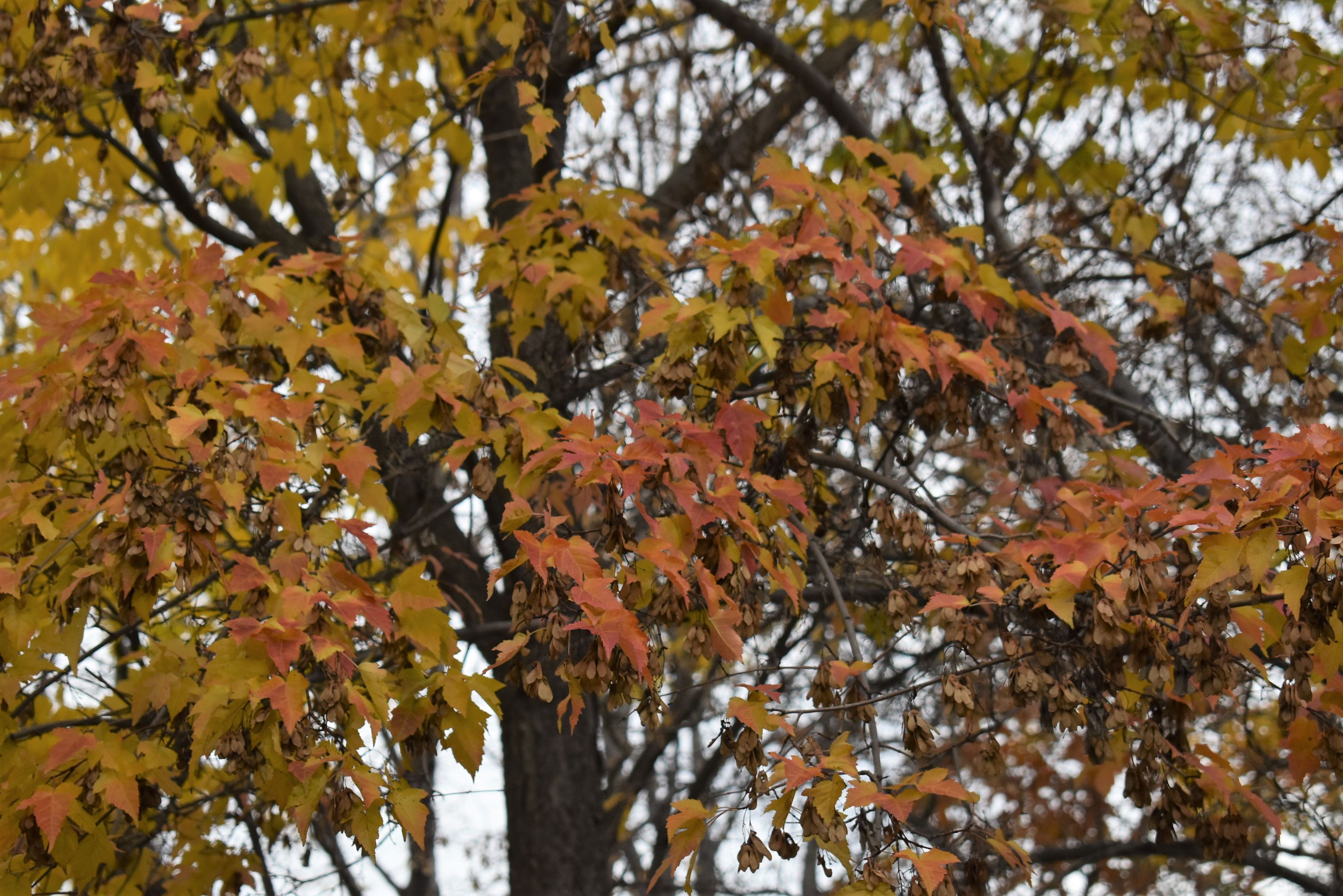 Plant Description: Small tree with an irregular shaped canopy native to parts of Asia. Usually forms as a multi-stemmed tree but can be single-stemmed with proper training. The tri-lobed glossy leaves emerge early spring and turn bright red in the fall. Inconspicuous pale yellow flowers bloom in late spring followed by bright red winged seeds. Tends to develop yellowish leaves due to iron chlorosis in the alkaline soils of Utah. This tree has invasive traits -- the seeds will germinate at a high rate, and unwanted volunteer trees need to be weeded out every spring.