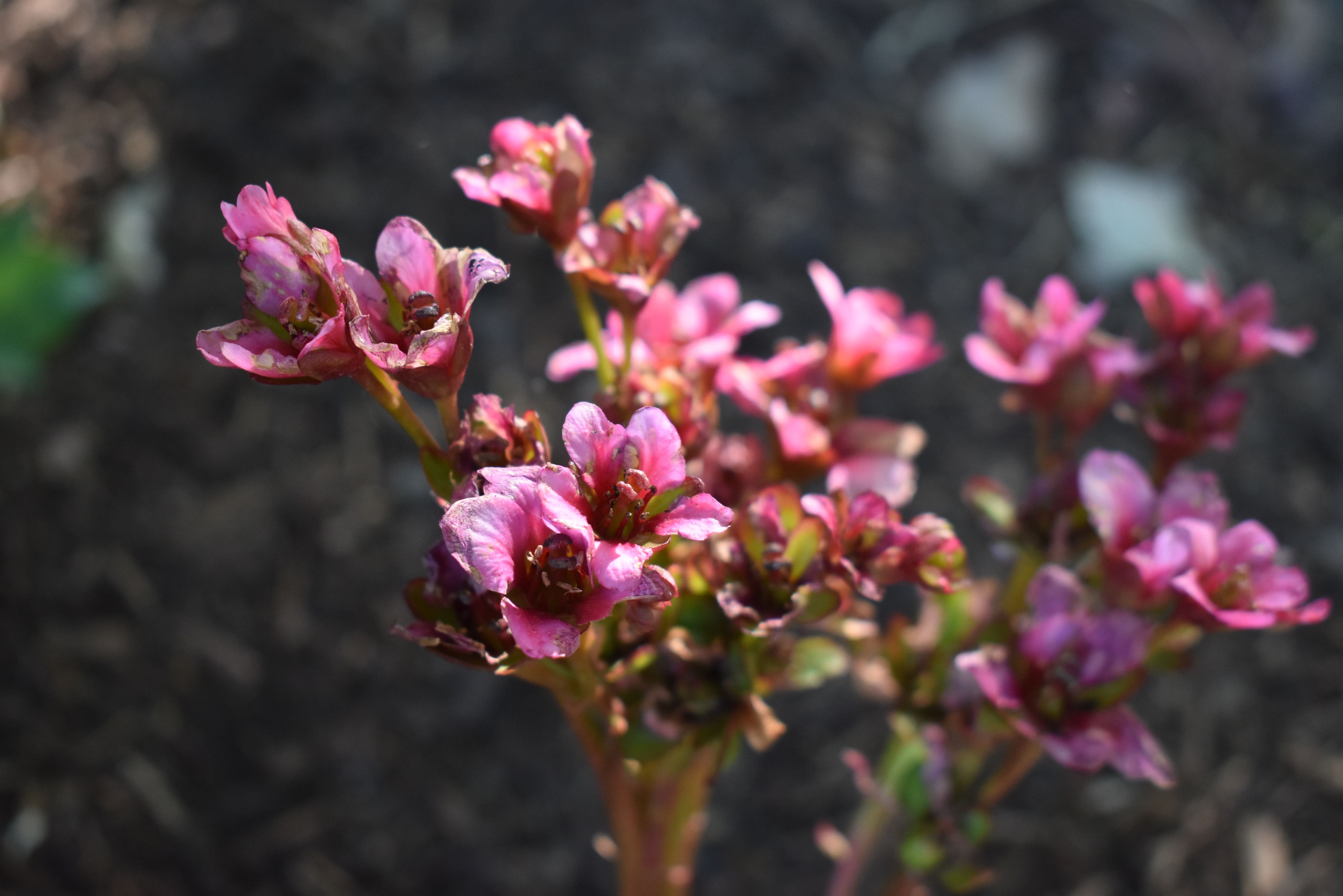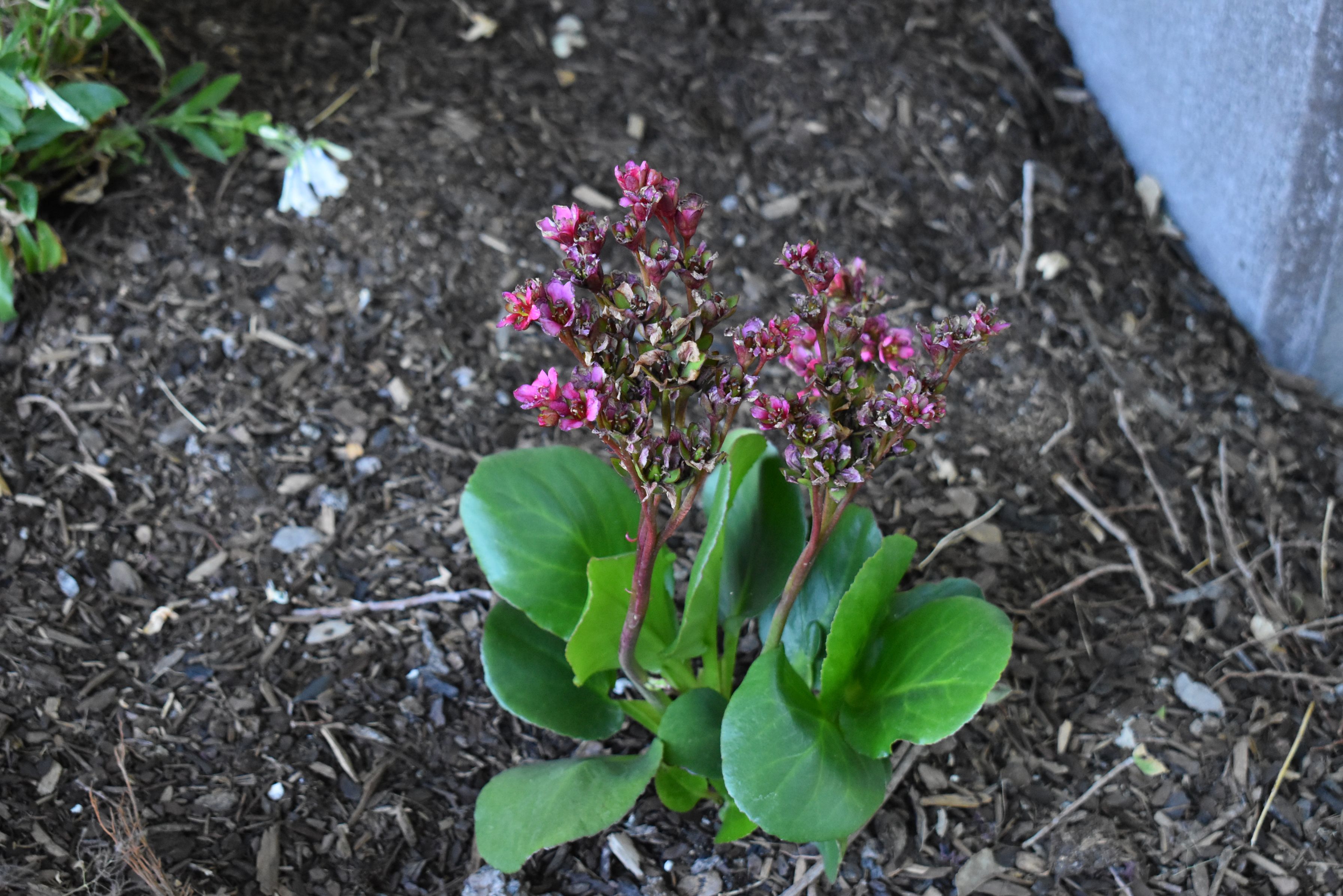Plant Description: Large clusters of bubblegum-pink flowers bloom earlier in spring than most perennials. Mounds of broad, glossy, dark green leaves stay green through the winter. Looks great planted in groups under trees and tall shrubs.