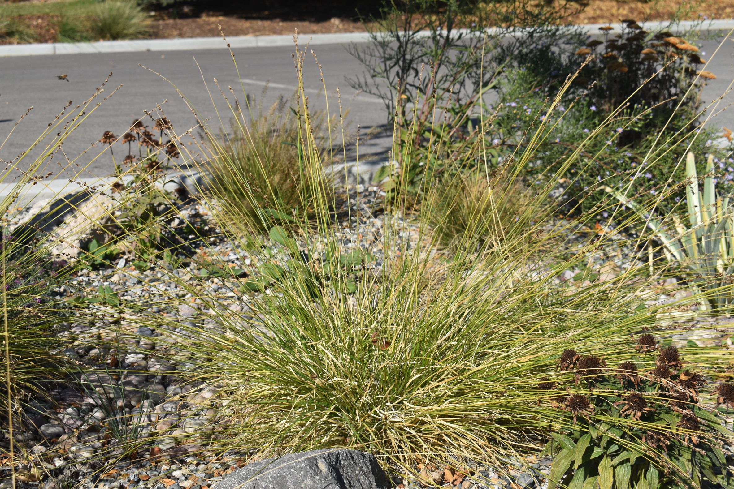Plant Description: The neat mounds of this native grass’ finely textured green leaves are topped with hair-like flower stalks growing 2-3 feet above the foliage. Fall turns the plant an attractive gold which sticks around into winter. A useful shade plant for stabilizing soil as well as an important larval food plant for several butterfly species.