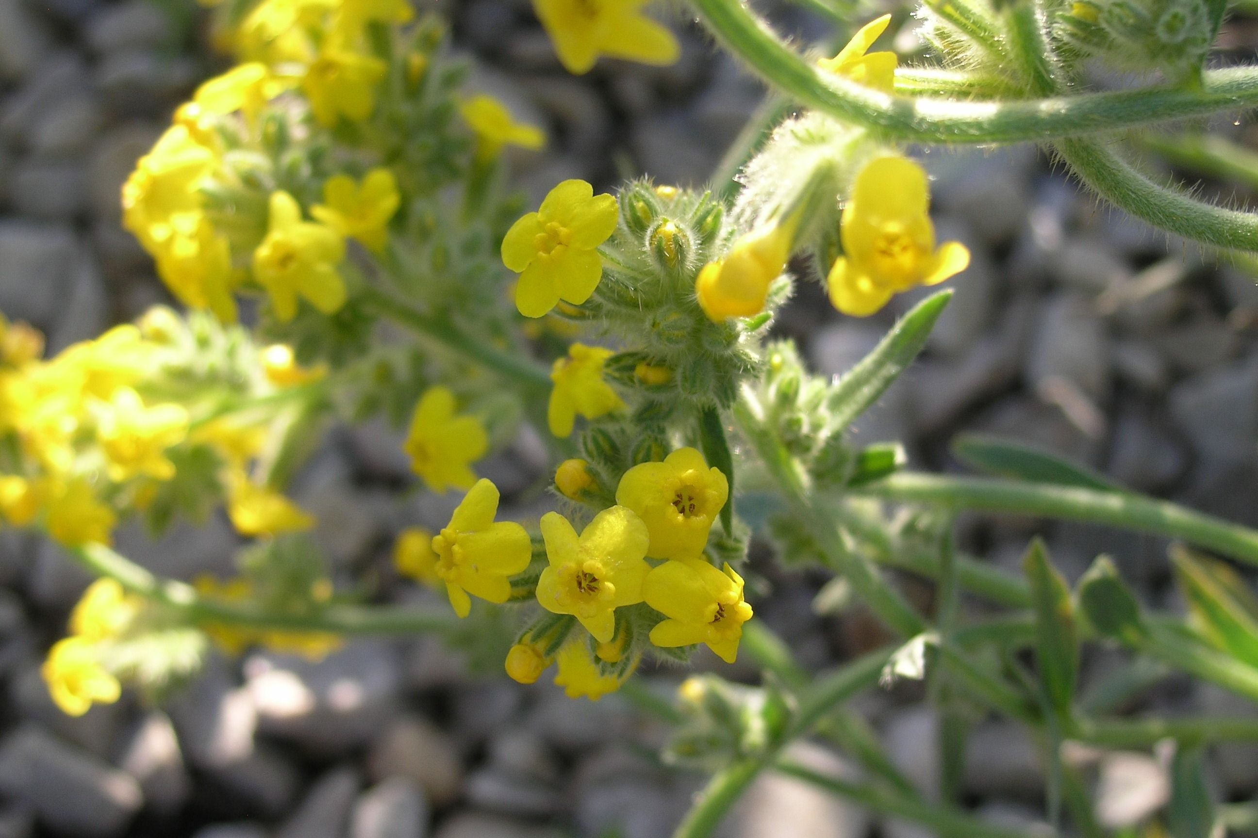 Plant Description: Desert loving perennial native to the western United States. Spring brings 5-petaled bright-yellow forget-me-not type flowers. Lance-shaped narrow mid-gray green leaves arise from the base. Not very available commercially. Extremely drought tolerant. Once established, will not require additional irrigation.