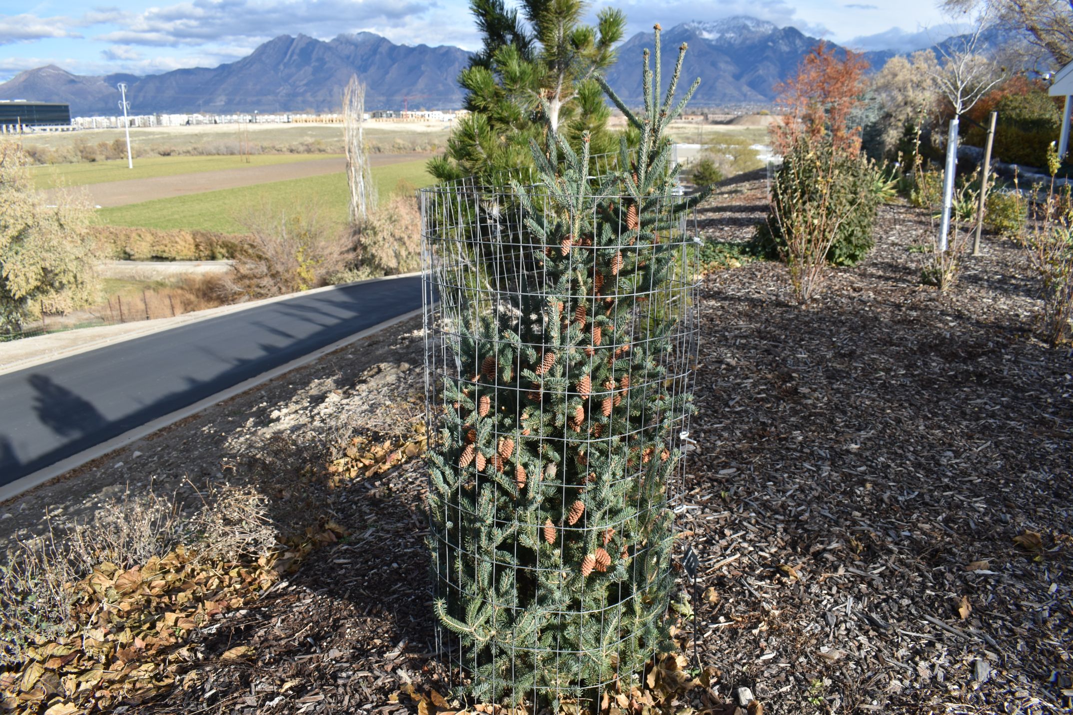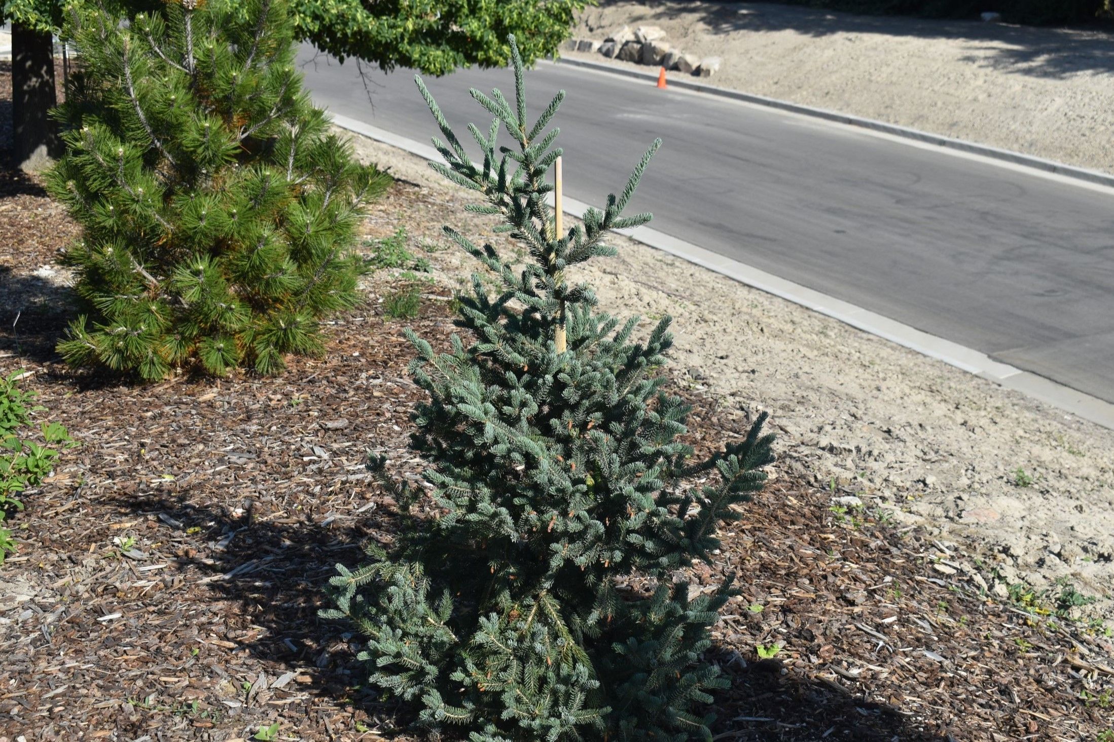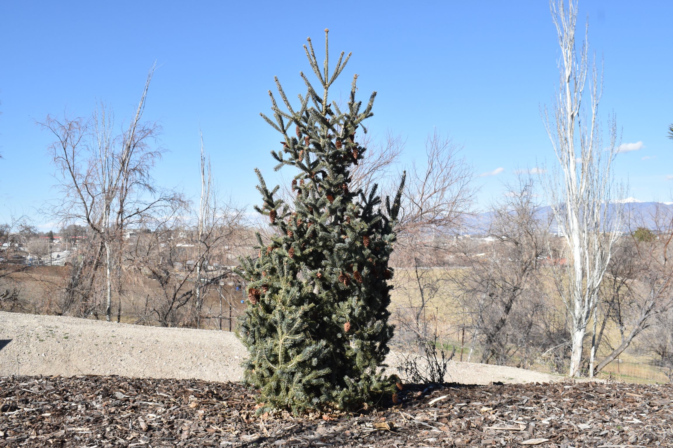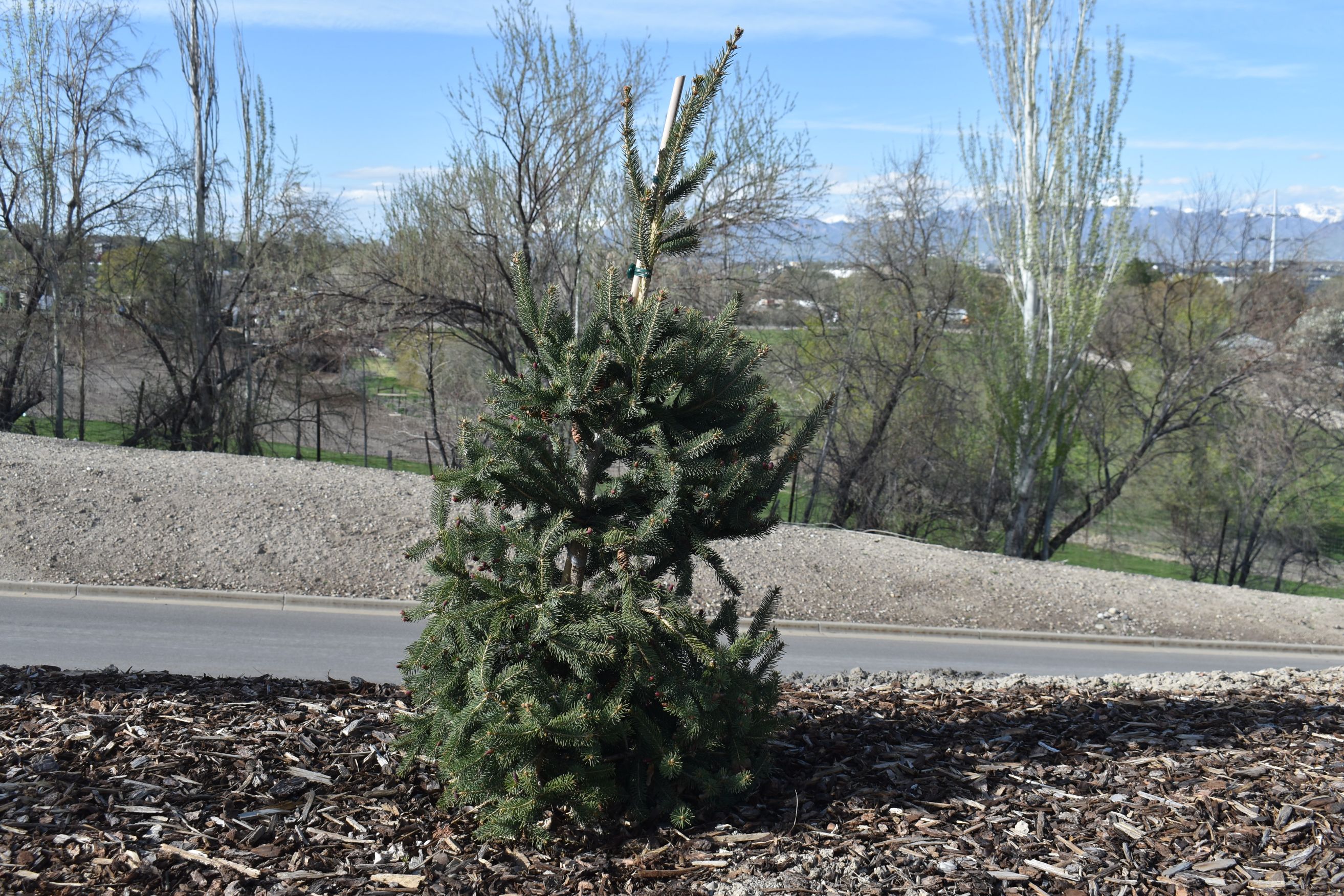 Plant Care: Tree - Evergreen (single-stemmed woody plants that keep their leaves during winter): Light pruning is required to maintain desired shape and to avoid branching problems such as double-leader stems. Evergreen trees can be difficult to establish. Adequate winter moisture is critical for the first 2-3 years until the roots establish. If there is a dry winter check the root ball with your finger for moisture before watering. Monitor for pests and diseases.