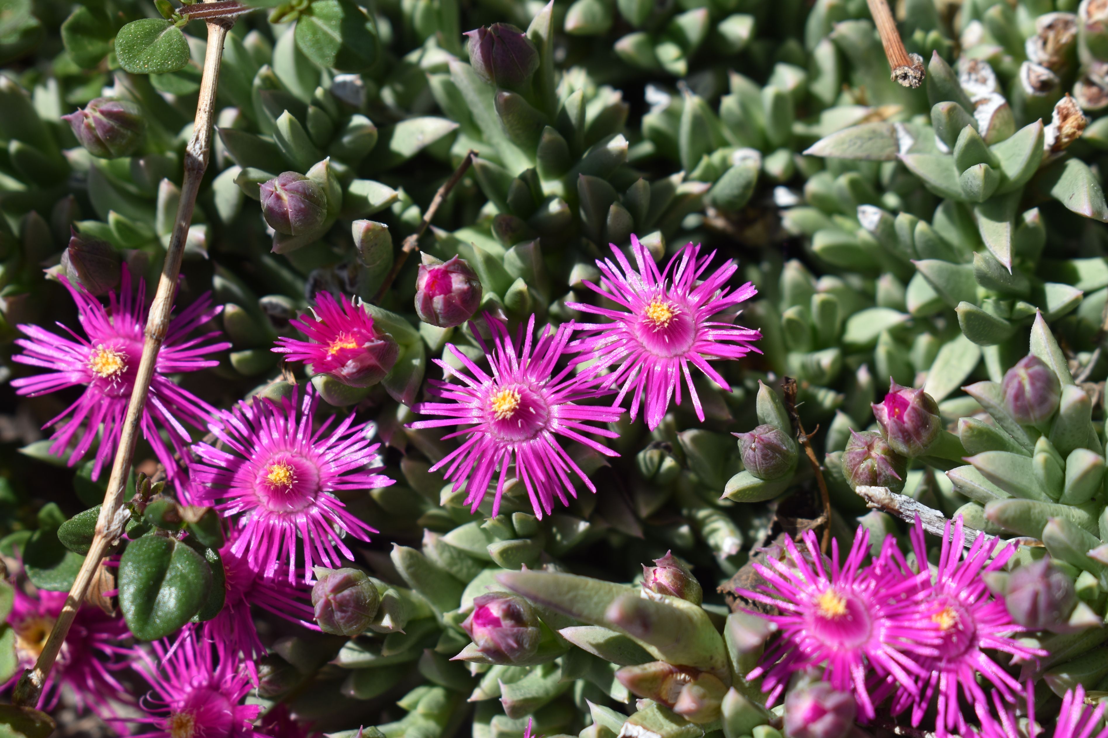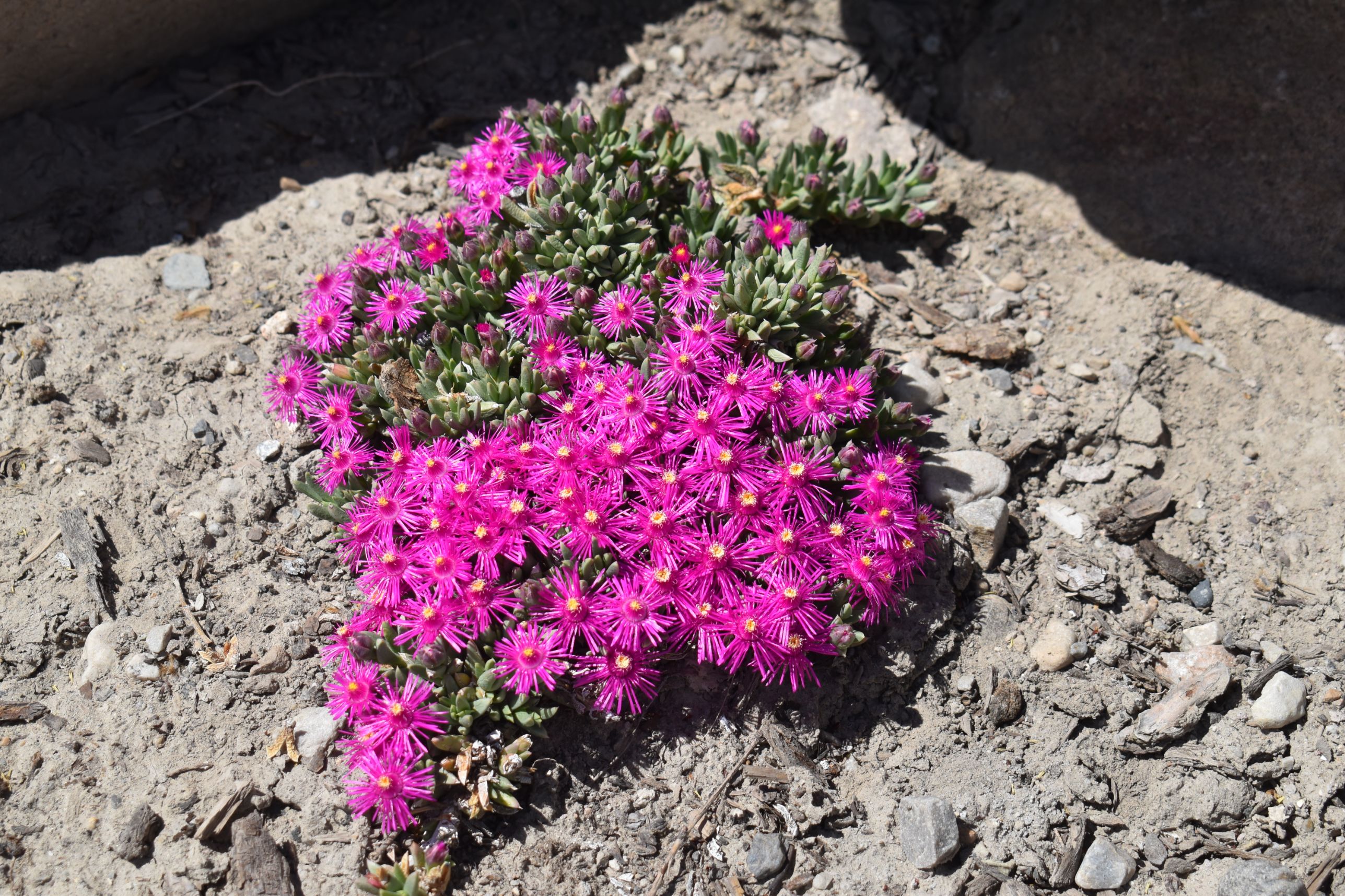 Plant Description: This succulent groundcover boasts an abundance of bright magenta flowers amidst angular, speckled, grey-green foliage in the summer. Extremely drought tolerant once established, this plant appreciates well-draining and dry soil conditions even in winter. Plant this low-maintenance, deer and rabbit-resistant ice plant in rock gardens, containers or any other dry areas needing evergreen groundcover.