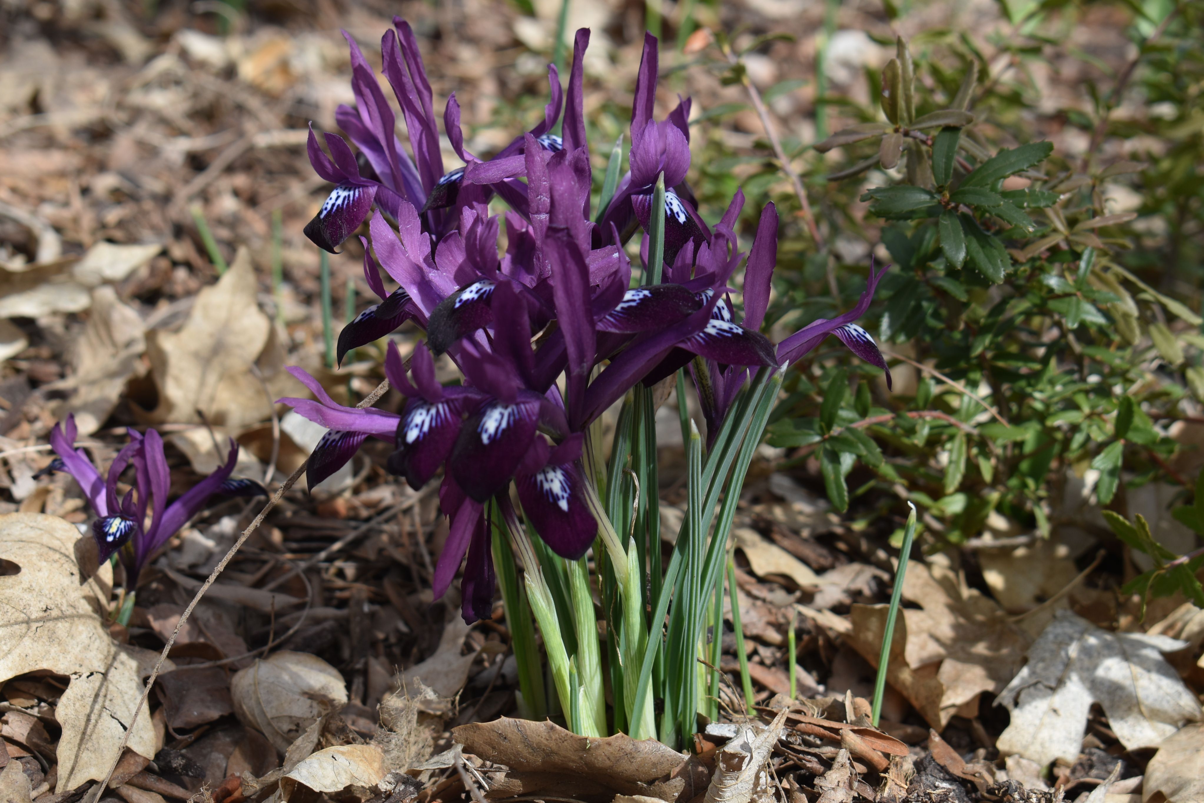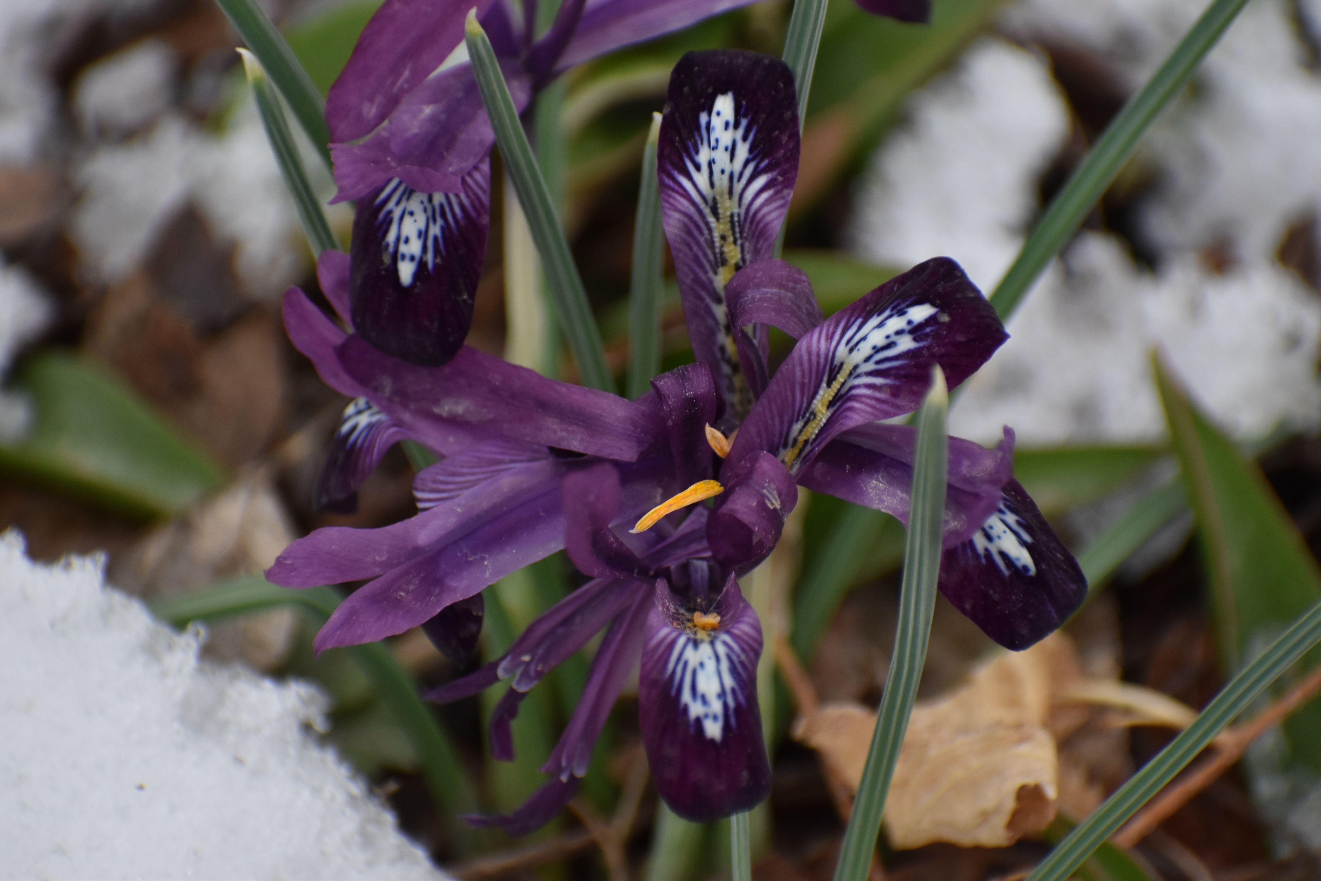 Plant Description: This fragrant iris is small and extremely early flowering. Its petals are a rich purple with white and blue speckles and its leaves narrow and grass-like. This early spring bloom adds excellent interest and color while most plants are still dormant.