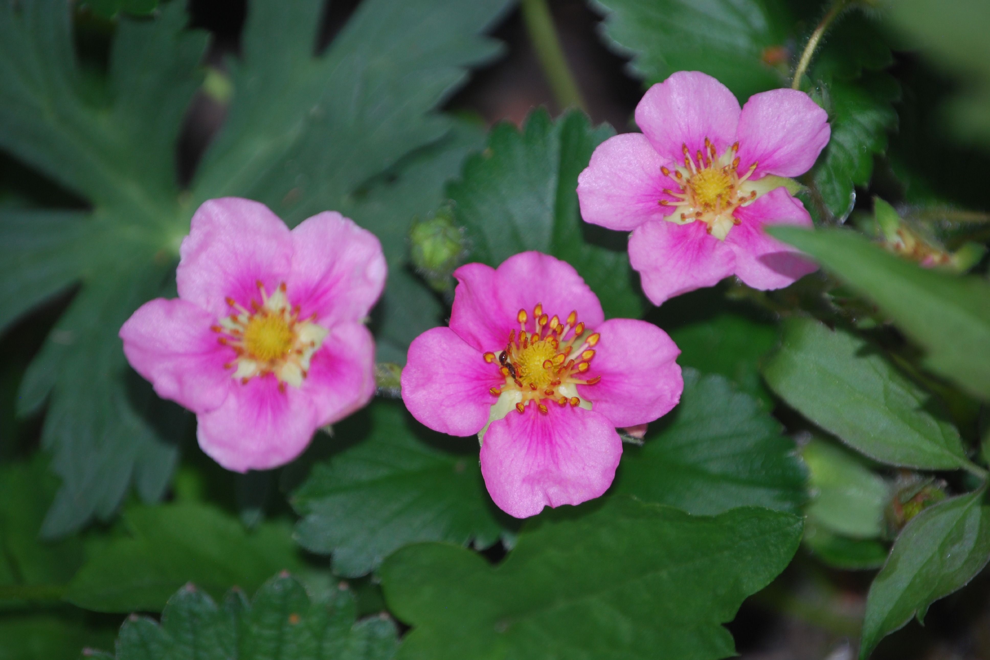 Plant Description: Hybrid spreading perennial grown primarily for ornamental purposes. Five-petaled light pink flowers with yellow centers bloom throughout the summer. Flowers sometimes lead to small edible berries. Dark-green leaves are trifoliate and toothed along the edges. Grows best in fertile soils with moderate amounts of water. Tolerant of a wide range of conditions.