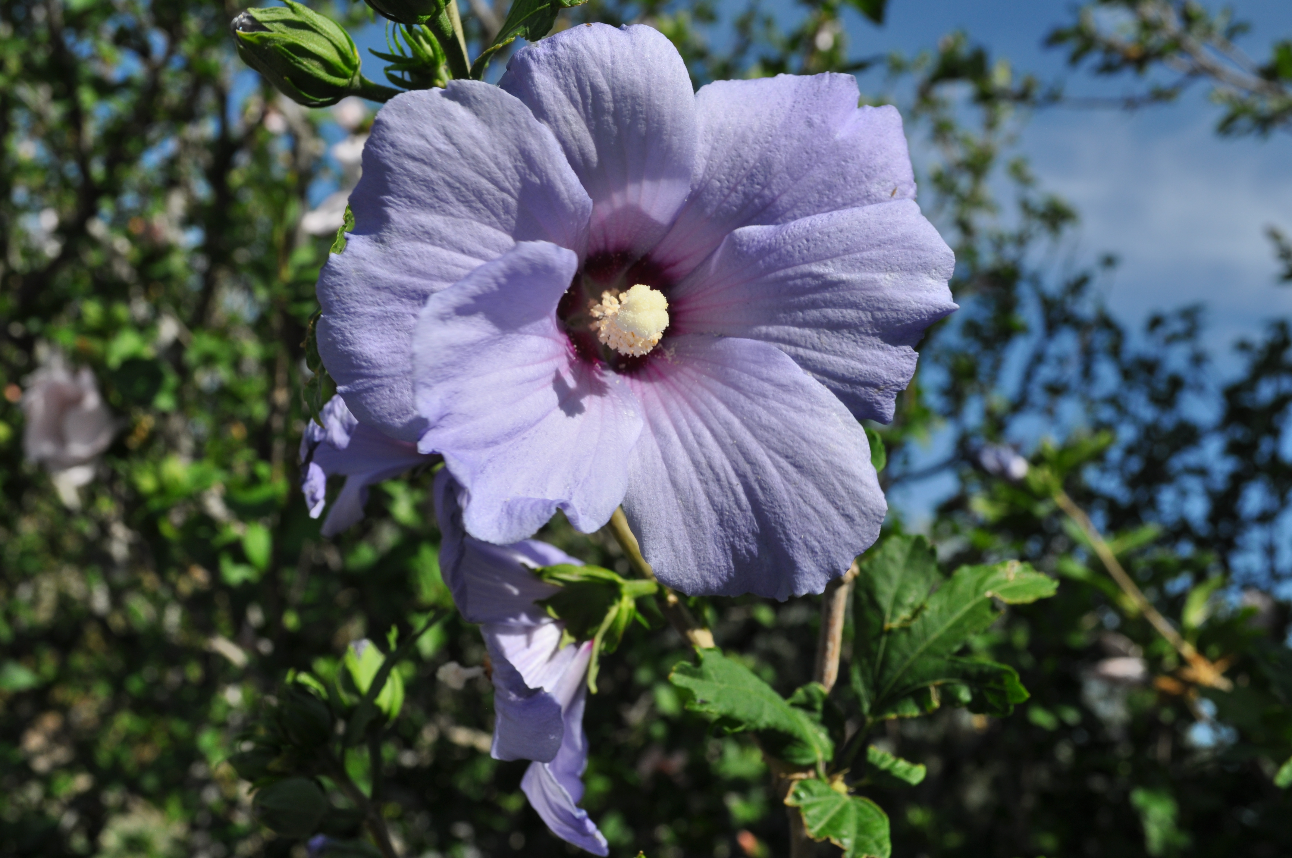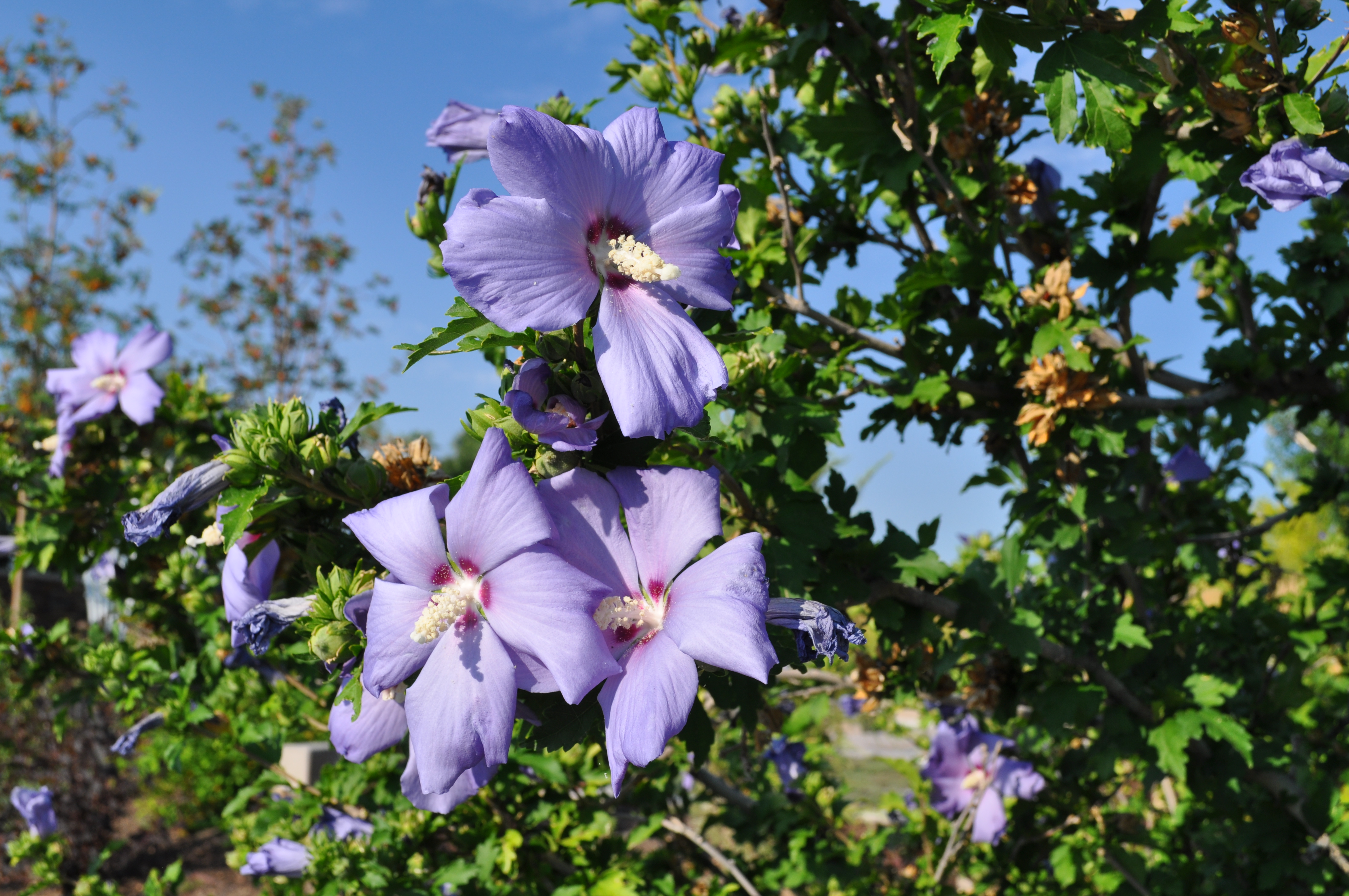 Plant Description: Vigorous, multi-stemmed, upright, deciduous flowering shrub. Numerous showy, deep violet-blue, single flowers reddish-purple throats are borne throughout the summer. Attractive 3-lobed, coarsely toothed leaves grow on erect stems. Tolerant of heat, drought, and poor soils. Prefers fertile soils with moderate amounts of water.