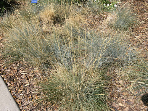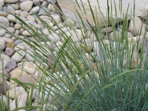 Plant Description: Small, clump-forming grass. Bluish-green foliage makes a superb color accent. Bears wheat-golden seedheads up to ten inches long in May-June. Extremely drought and heat tolerant. Great as a container plant or in masses.