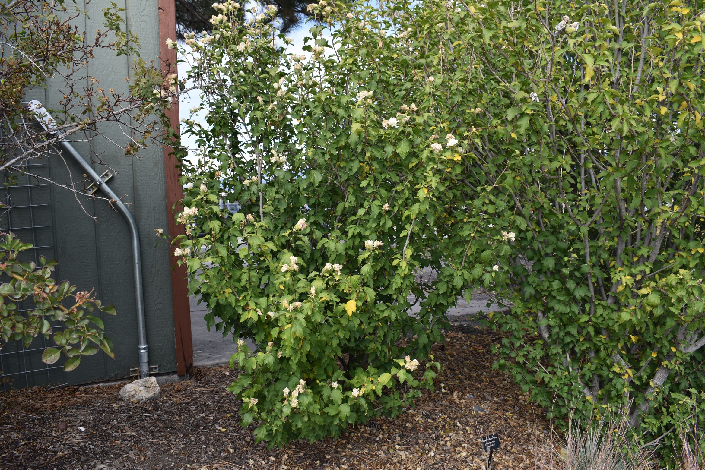 Plant Description: Vigorous, multi-stemmed, upright, deciduous flowering shrub. Numerous showy, deep pure-white, fully double flowers are borne throughout the summer. Attractive 3-lobed, coarsely toothed leaves grow on erect stems. Tolerant of heat, drought, and poor soils.