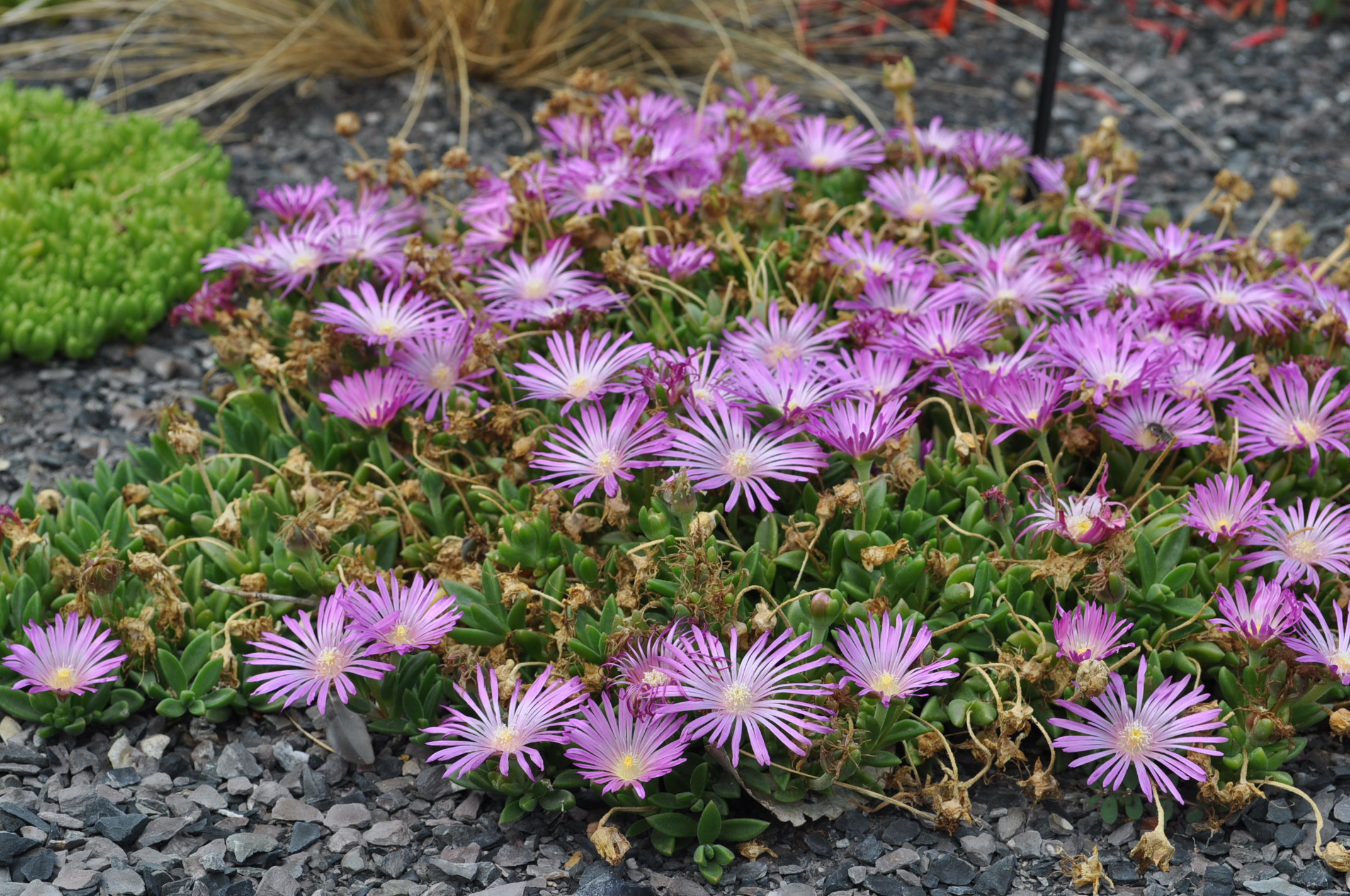 Plant Description: Creeping, mat-forming perennial succulent. Resembles D. cooperi but more cold hardy. Dark pink flowers appear in early-summer and bloom until fall. Bright-green knobby leaves have purple highlights in the winter. Avoid excessive water. Prefers well-drained soils and handles heat and drought well.