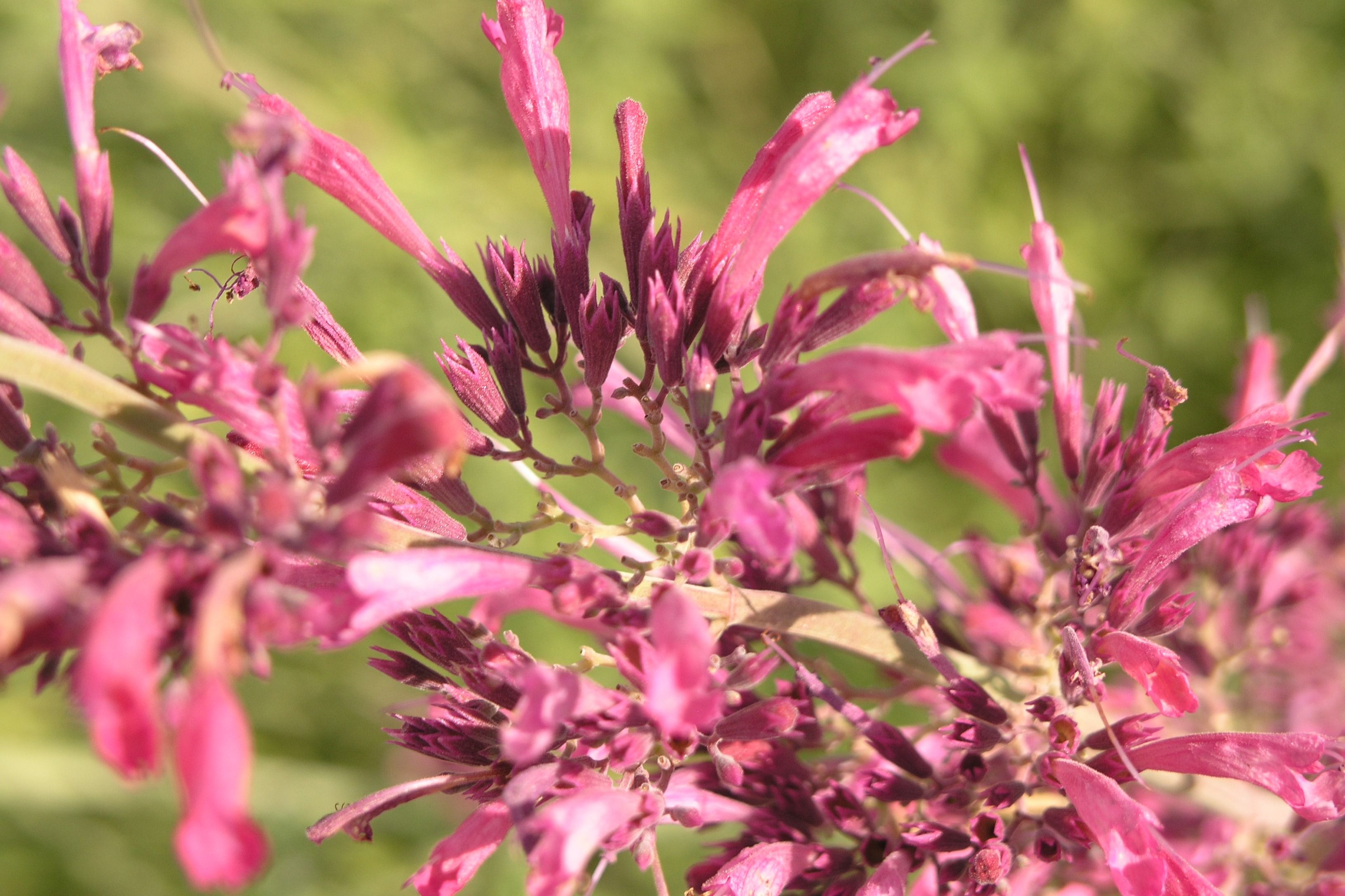 Plant Description: Upright growing herbaceous perennial. Spikes of dark-pink flowers bloom throughout the summer and are favored by hummingbirds. Gray-green leaves release a bubblegum-like fragrance when crushed or brushed.