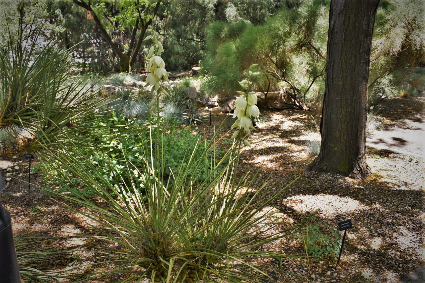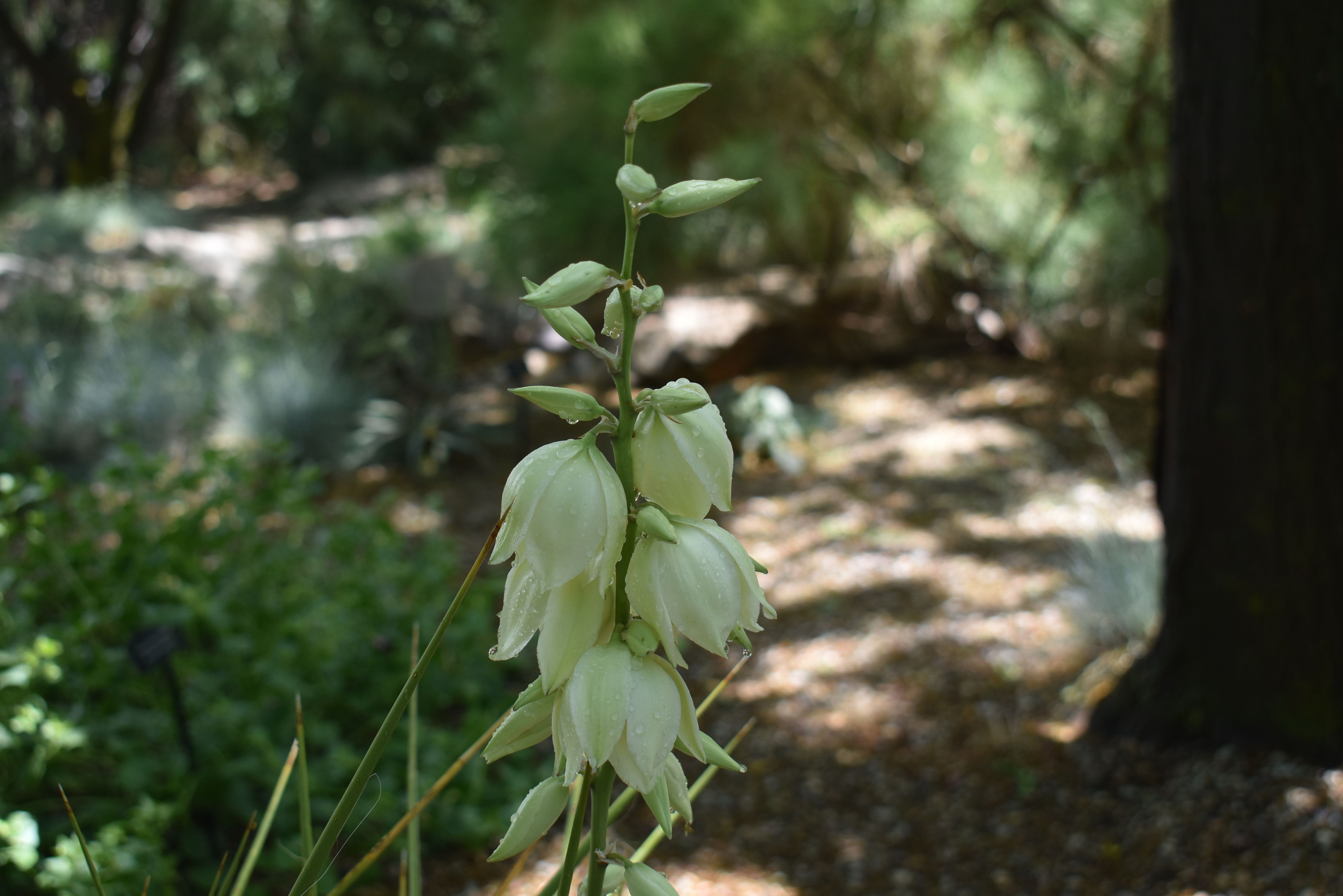 Plant Description: Upright-growing evergreen shrub. Leaves are very narrow and pointed at tip end. Clusters of cream-colored flowers tinged with purple grow on tall stems above the plants in mid to late-spring. Needs no irrigation once established. May not be entirely winter hardy in Utah.
