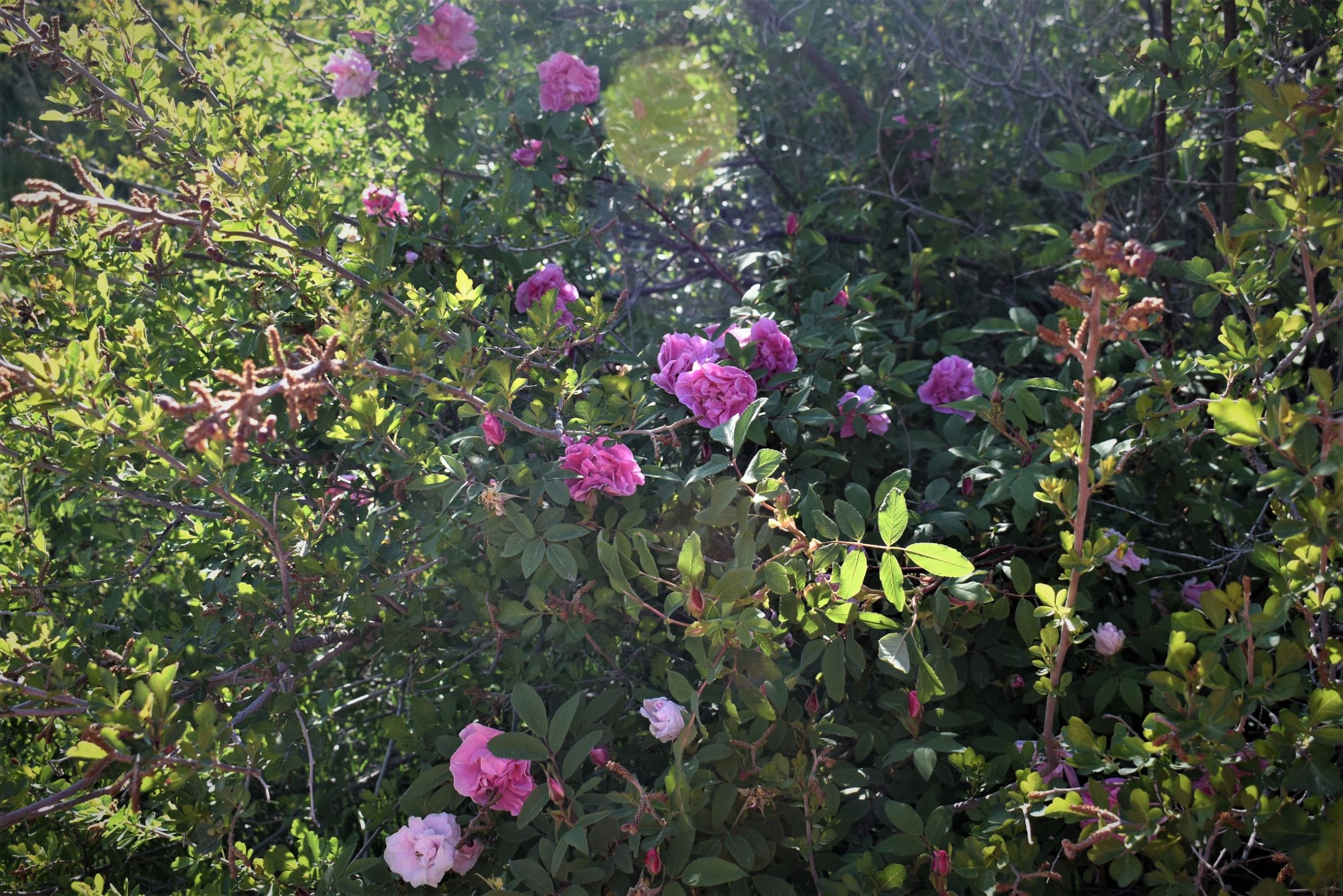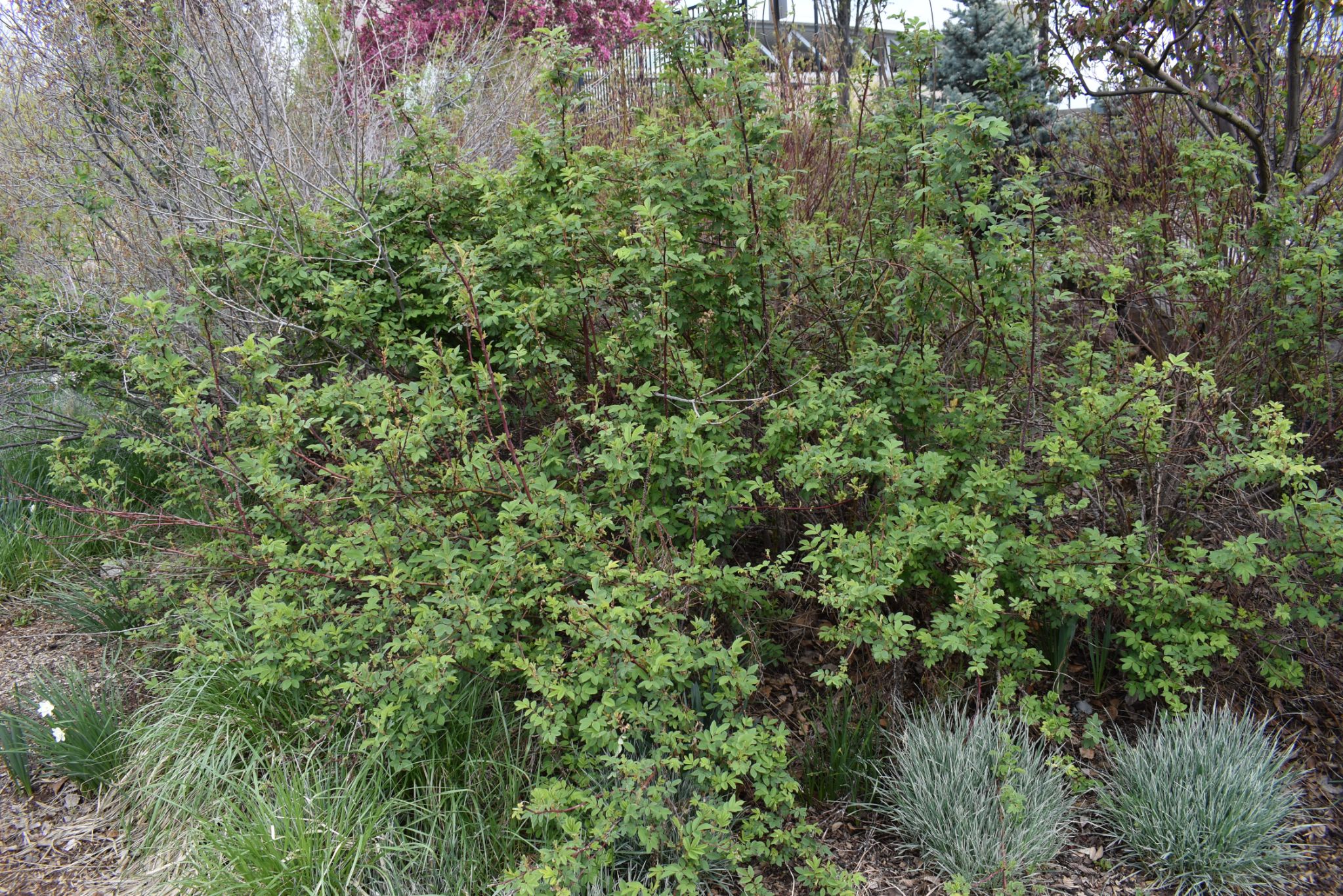 Plant Description: Deciduous flowering shrub. Clusters of fragrant light-pink to fuschia flowers bloom in late-spring to early-summer and continue to bloom sporadically throughout the summer. Stems are very thorny. Leaves are green with deep veins and serrated edges. Proper care and pruning will ensure healthy plants with many blossoms.