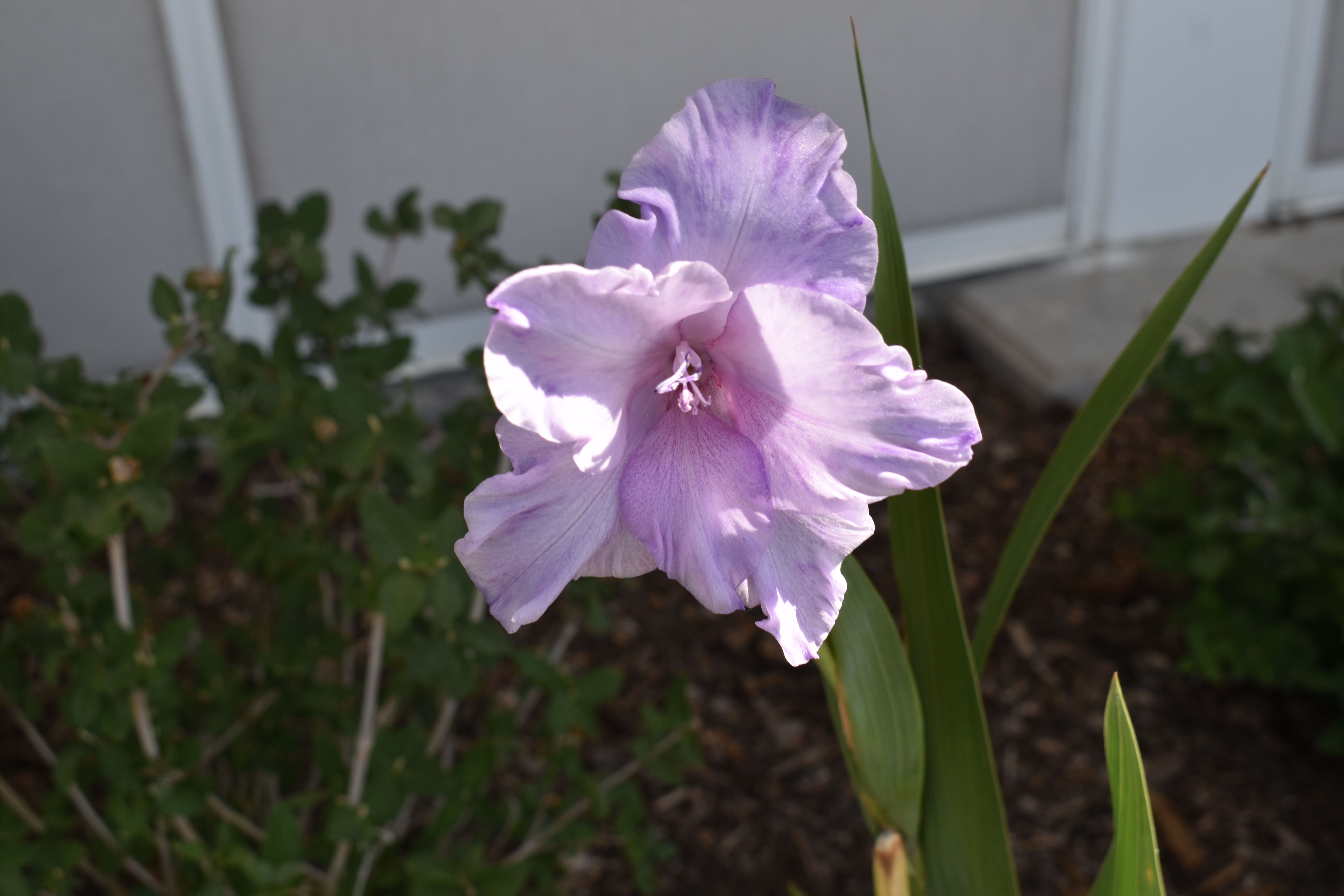 A clumping perennial with sword-like leaves that are variegated yellow-gold and green. Tall stems produce fragrant, bearded purple flowers. Spreads by rhizomes which are easy to divide.