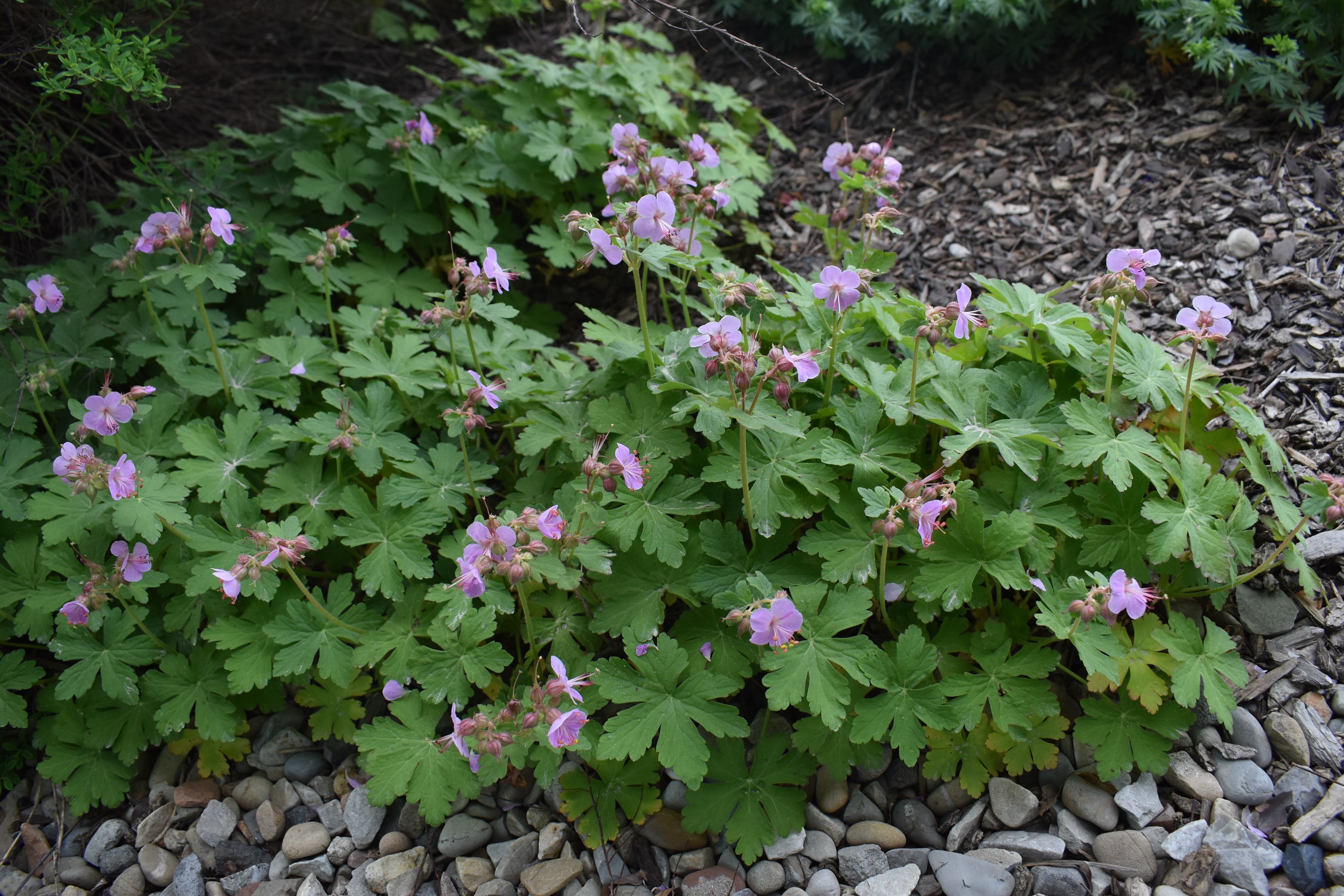 Low-growing herbaceous perennial that spreads by rhizomes. Under preferrable conditions it can form a dense mat. Produces masses of dark pink flowers in spring. Light green foliage is rounded and slightly lobed.
