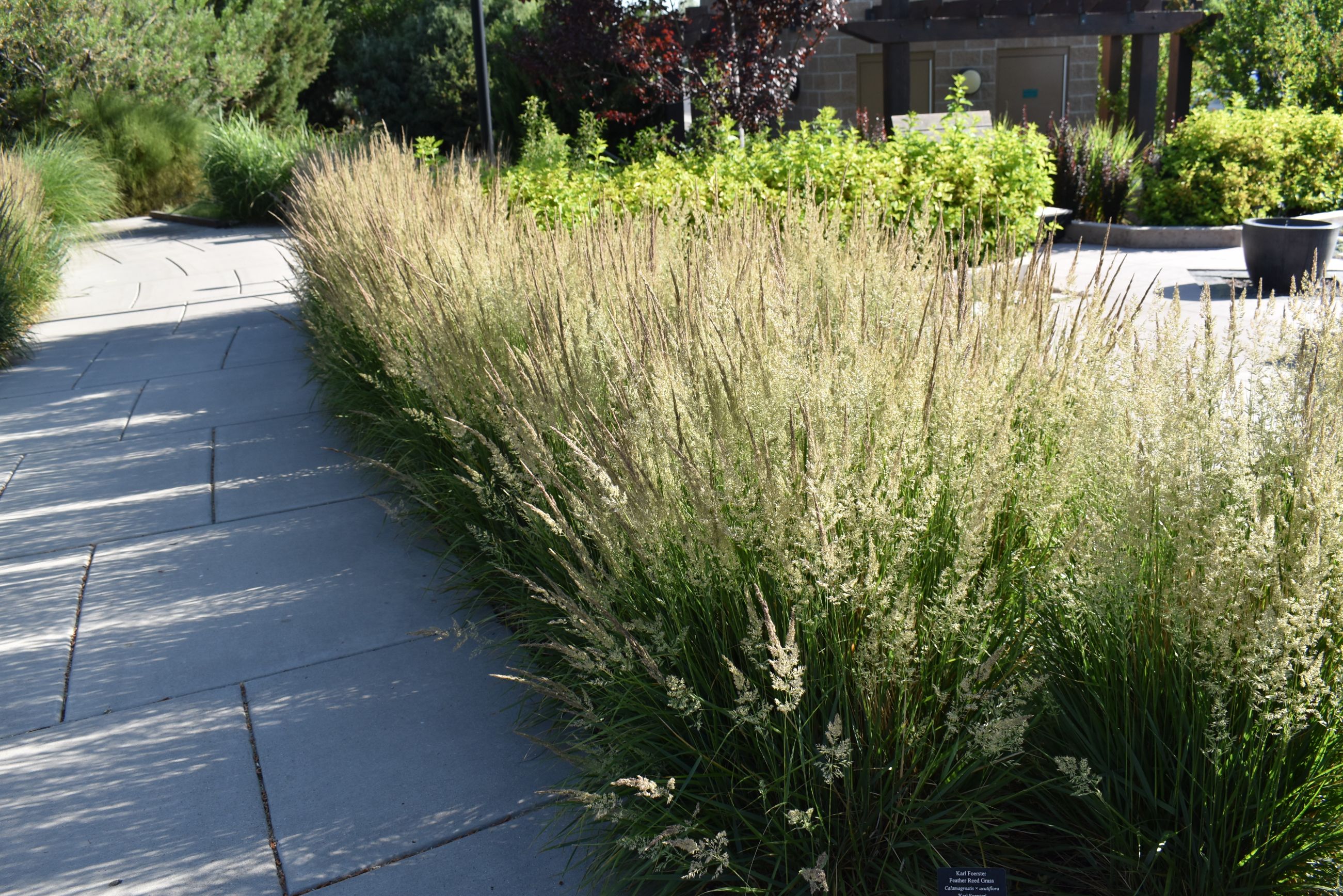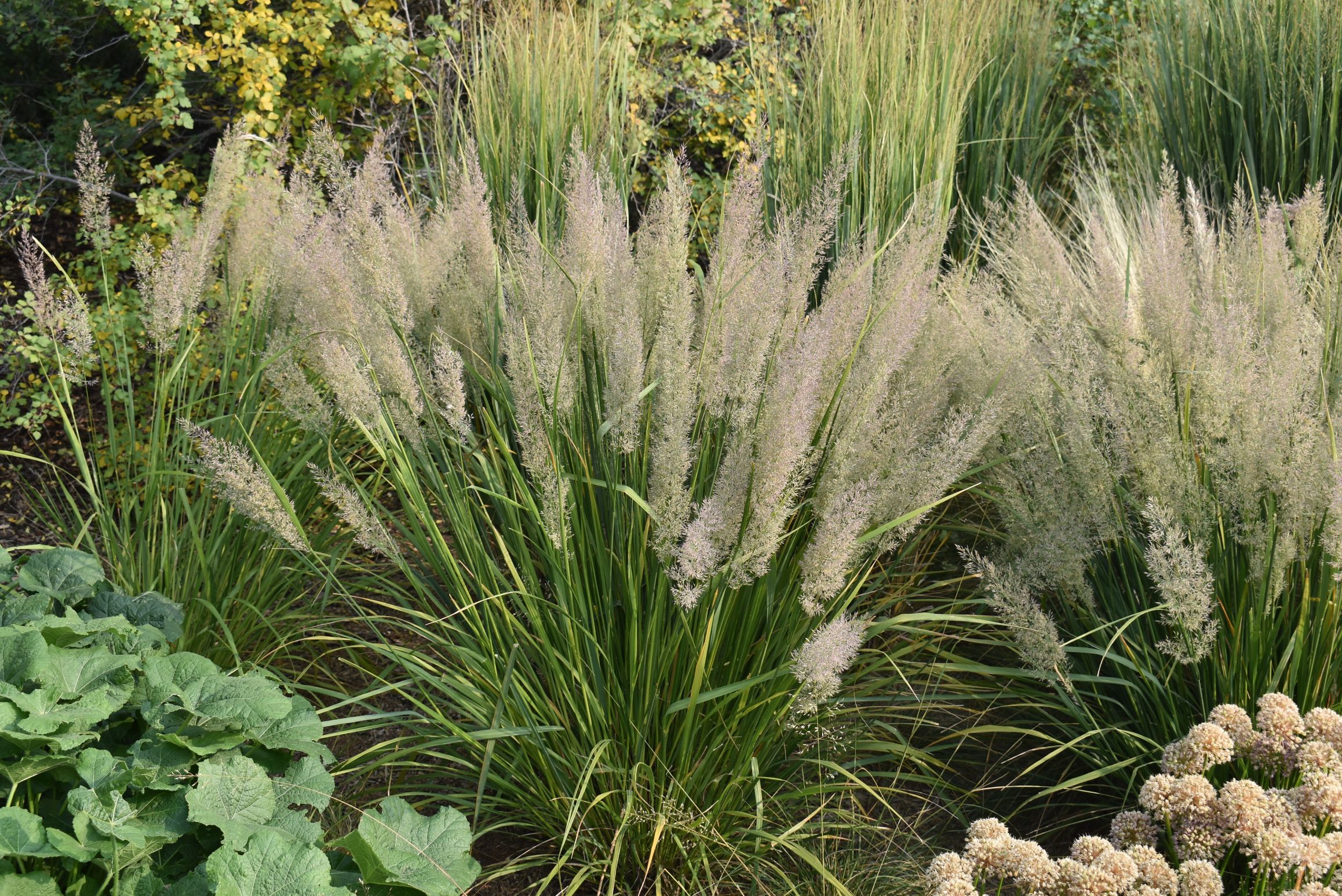 Highly variable clump-forming grass species whose purple-red tinted, airy inflorescences appear in late-summer, turning silvery-gray in fall. Narrow 1/2" wide leaves are glossy green. Adapts to a wide range of soils if sufficient moisture is available.