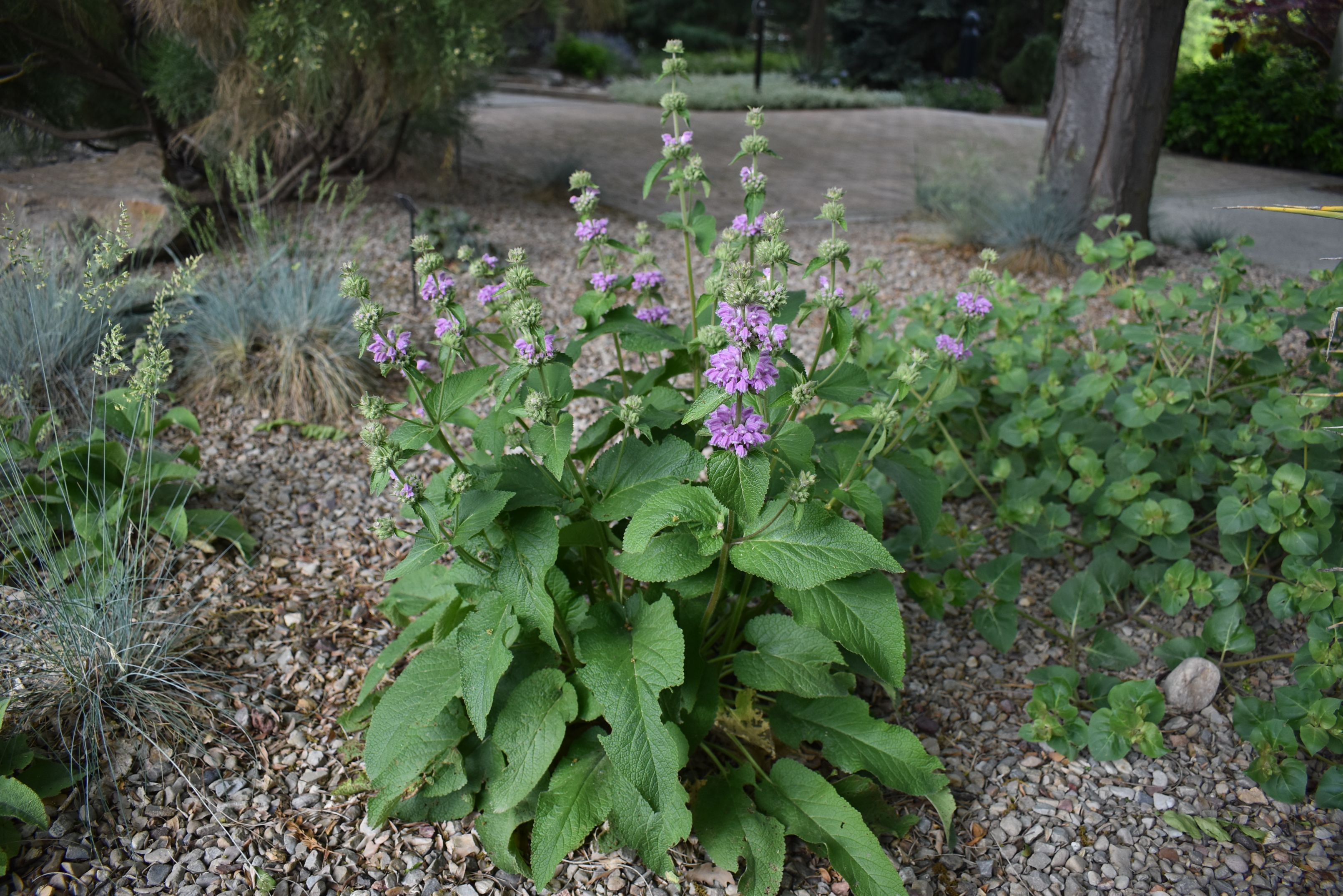 This large perennial is native to the Himalayas and Kashmir. Large, textured, green foliage and whorls of lavender-pink flowers make this an excellent choice for dry shade gardens.