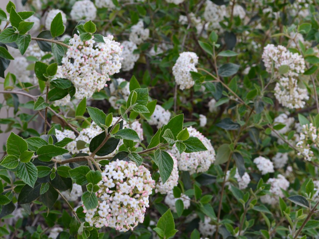A slow-growing, low-maintenance shrub, this viburnum is a good choice for waterwise landscapes. Red to pink buds open to pink flowers changing to pure white snowballs with maturity. Dark green leaves turn dull red in the fall.