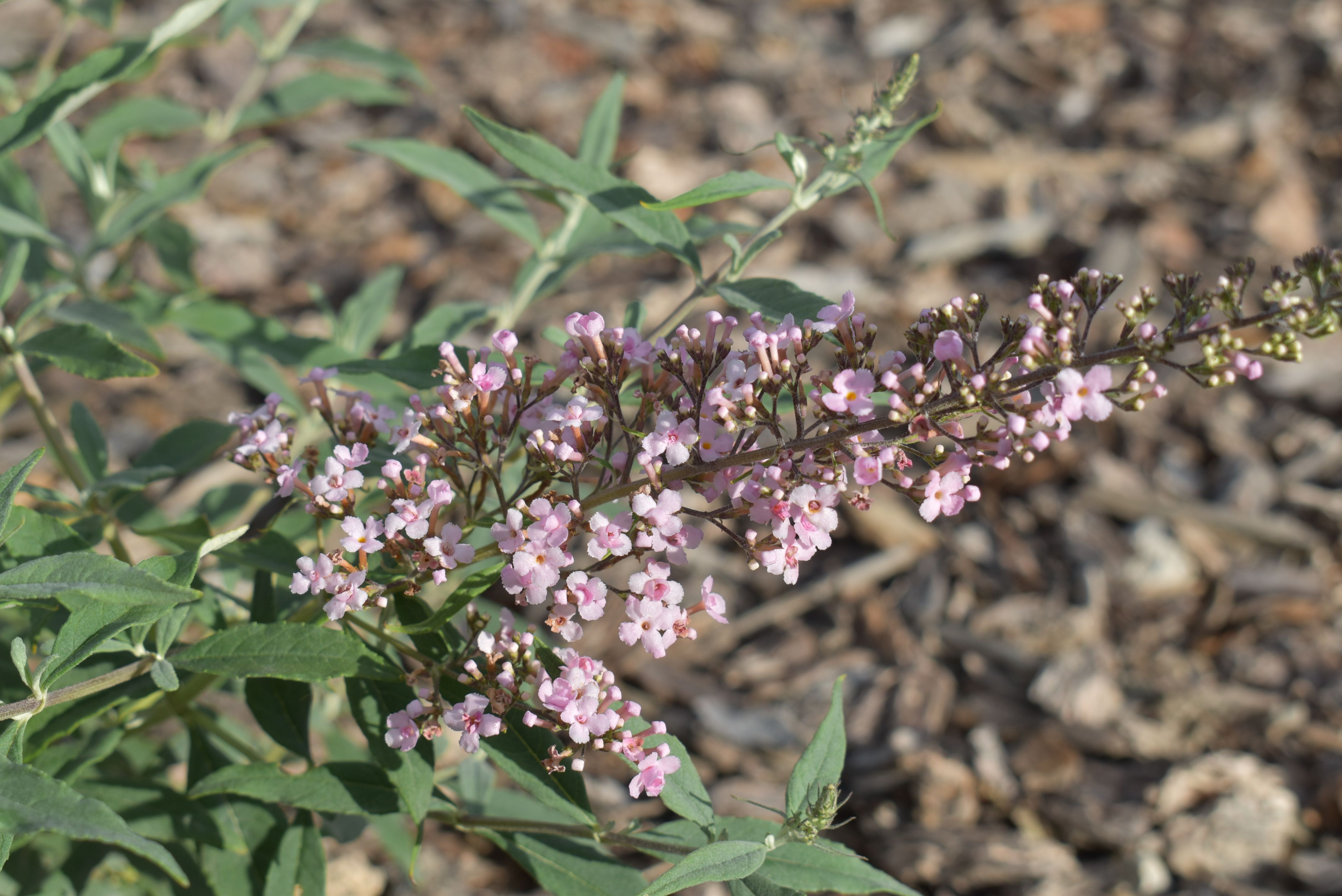 Pugster Pink butterfly bush offers the small frame of a dwarf butterfly bush without compromising on flowers. Large, dense panicles of bubblegum-pink flowers, loved by butterflies and hummingbirds, bloom continuously from summer through fall even without deadheading. The robust stems of this cultivar are extra cold-hardy and can survive harsher winters.