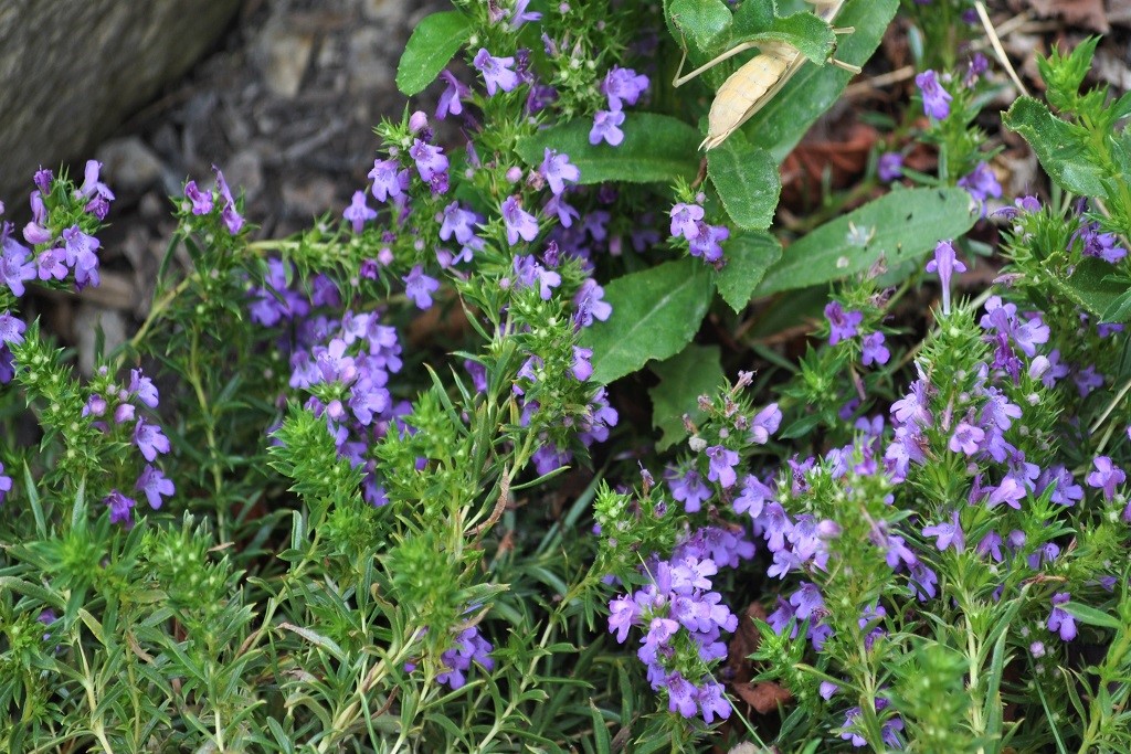 This attractive ground cover forms mats of tiny olive-green leaves that are covered by clusters of salmon pink flowers during the summer. This species is not commonly used for culinary purposes due to unreliable strength of aroma. It grow best in full sun and can survive with little water once established.