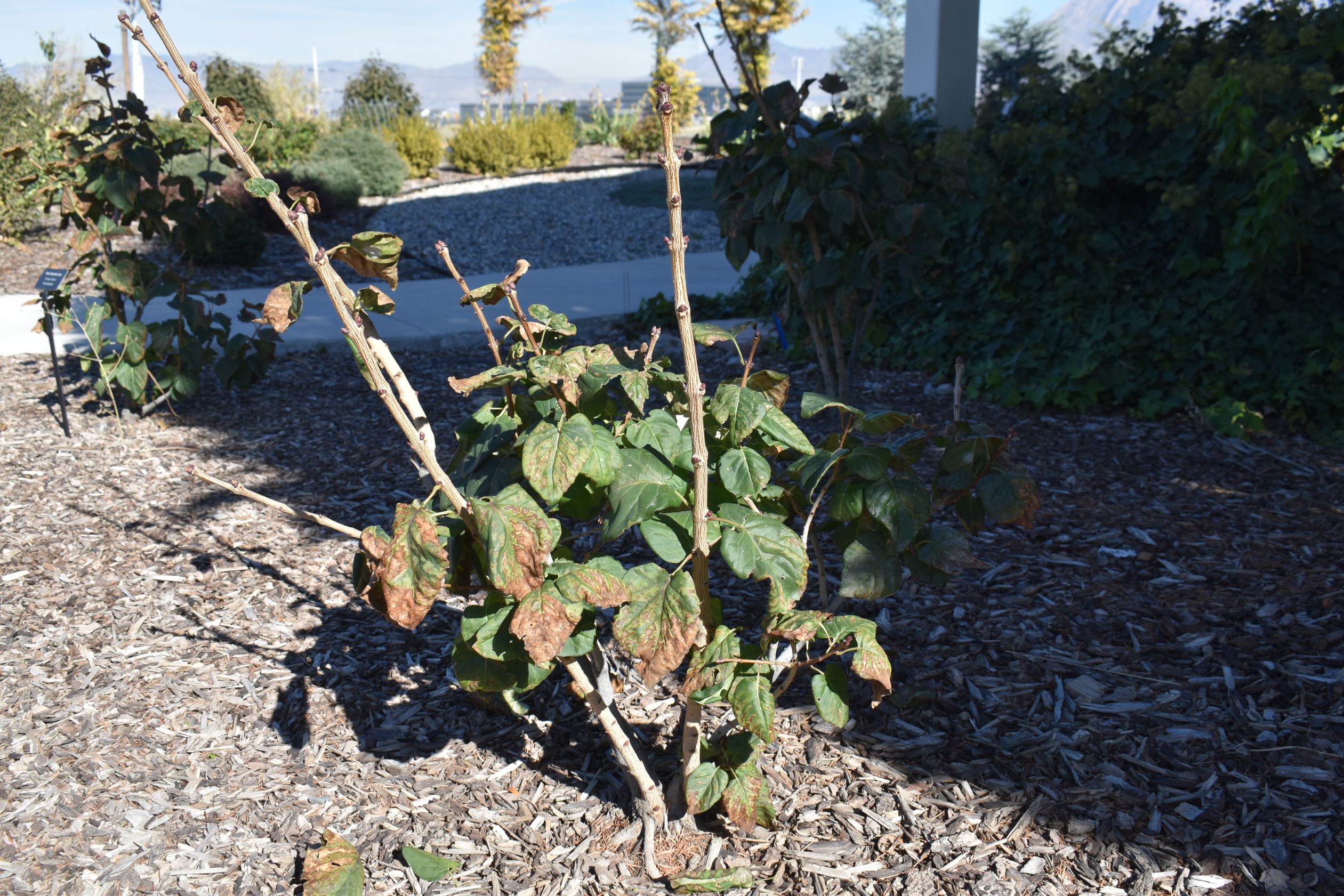 ‘Phantom Holly’ is a small to medium, multi-stemmed deciduous tree with pointy, lobed, gray foliage resembling holly leaves. Some drought tolerance. It is a cultivar of Wavyleaf Oak, a natural hybrid native to the Southwest. Not widely available for purchase.