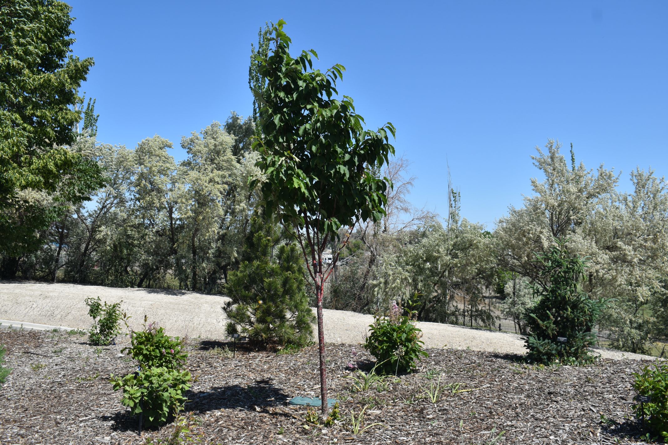 This narrow, upright tree features bundles of fragrant, rosy pink flowers in early spring. Rich, dark green summer foliage turns red and orange in fall. Great tree for smaller urban spaces and for attracting birds to the landscape.
